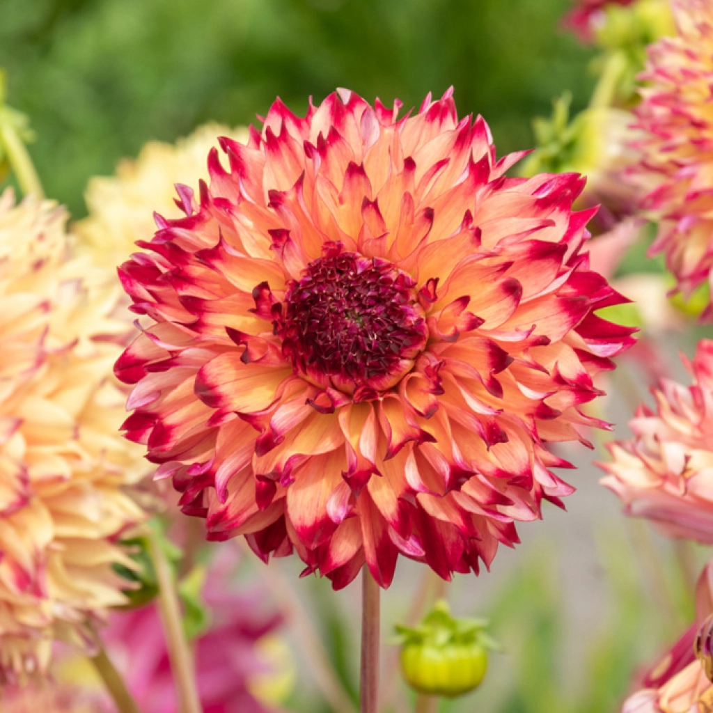 Ez a dália szenvedélyes és karakteres megjelenésével bűvöl el. A virágok teltek és rojtosnak tűnnek. Júliustól az első őszi fagyokig bőségesen virágzik. Világos virágú fajták mellé ültetve kellemes kontrasztot fog alkotni. A dáliának napos helyre és jó vízelvezetésű talajra van szüksége a gazdag virágzáshoz. A csomag 1 dália gumót tartalmaz.