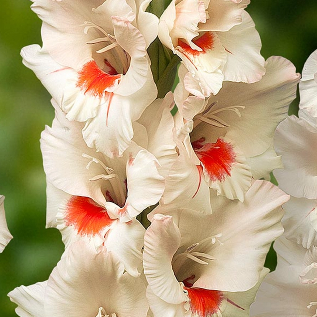 Az Ajax fajta virágainak alapszíne törtfehér, melyet piros vagy narancssárga folt díszít a virág közepén. A virágok hosszú, erős szárakon nyílnak, így vágott virágként is remekül használhatók. Több napig szépek maradnak vázában. A kardvirágot napos helyre ajánlott ültetni. A csomag 10 virághagymát tartalmaz.