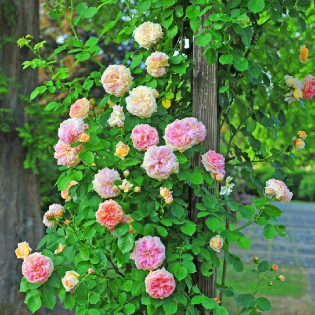 Elbűvölő futórózsa, változó színű, telt virágokkal. A sárga, narancssárga és rózsaszín árnyalatokban pompázó virágai illatosak, és a nyár elején jelennek meg. A zöld lombozat csodásan egészíti ki a kellemesen színes virágokat. Feltörő növekedésű fajta, mely elérheti akár az 3-4 m-t is, így szüksége van valamilyen támasztékra, amin felfusson, például kerítés, pergola vagy rózsafuttató. A gazdag virágzás érdekében a rózsát napos helyre ajánlott ültetni. Konténeres növényeket szállítunk.