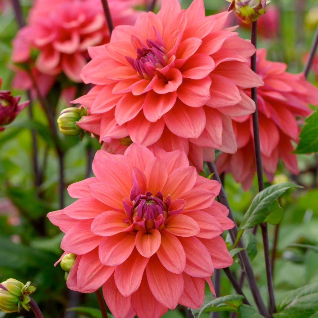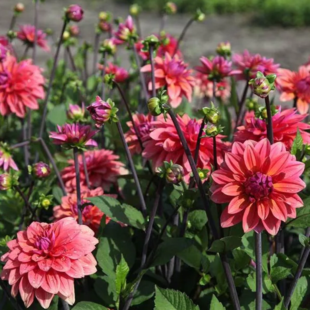 Ez a dália a napfelkelték árnyalatait idézi. A szirmok korallrózsaszín és barackos árnyalatai nagyon kellemesen ötvöződnek. A virág közepe és a szirmok töve (néha a fonákjuk is) lila vagy fukszia színű. Ez a kombináció egyedi és különleges színpalettát alkot, amellyel csak ritkán találkozhatunk dáliáknál. A fajta nagy előnye, hogy a virágok hosszú, erős szárakon nőnek, így kiválók lesznek vágott virágnak, és vázában vagy virágkompozíciókban is remekül fognak mutatni. A dália júliustól az őszi első fagyokig virágzik. Napos helyre ajánlott ültetni. A csomag 1 rizómát tartalmaz.