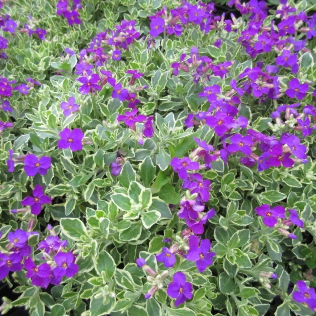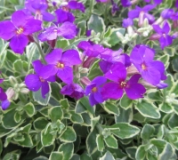 Alacsony növésű évelő, mely remekül használható talajtakarásra a kert naposabb és szárazabb részeiben. Gazdagon virágzik a tavasz közepétől. Élénklila, négyszirmú virágai szinte teljesen ellepik ilyenkor a növényt. Apró, szürkészöld leveleit krémszínű szegély teszi különlegessé. Örökzöld növény, így egész évben díszít. Napos helyet és jó vízáteresztő talajt igényel. Gyengébb, enyhén lúgos talajokon is szépen fejlődik.