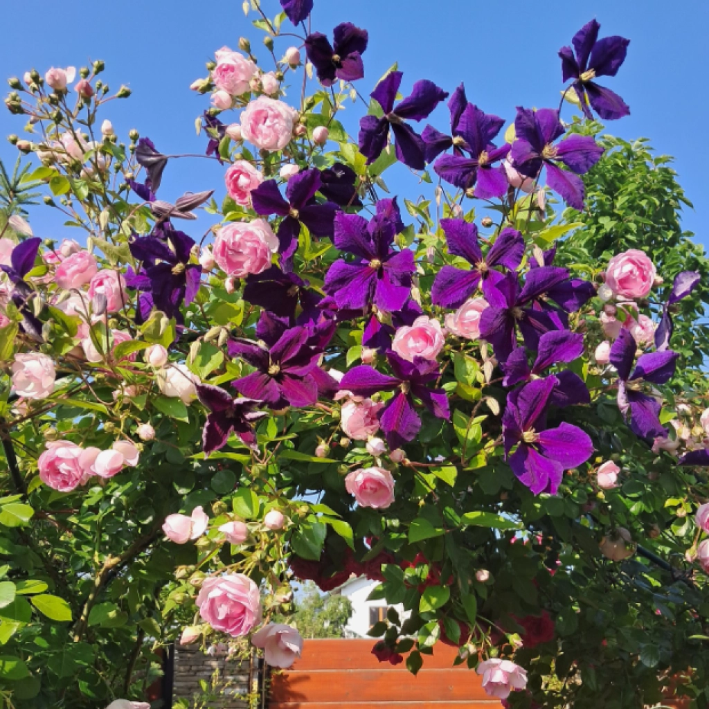 A kedvezményes ajánlat 1 futórózsát és 1 klemátiszt tartalmaz.