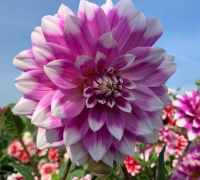Ez a dália nagyméretű és látványos virágokkal büszkélkedhet. Virágainak átmérője általában 15-20 cm, de előfordulaht, hogy a 20 cm-t is meghaladják. A szirmok alapszíne lila, a hegyeik pedig fehérek, ami elegáns kontrasztot teremt. A dália a nyár közepétől az első őszi fagyokig virágzik. Napos helyre, jó vízelvezetésű talajba ajánlott ültetni. A csomag 1 dália gumót tartalmaz.