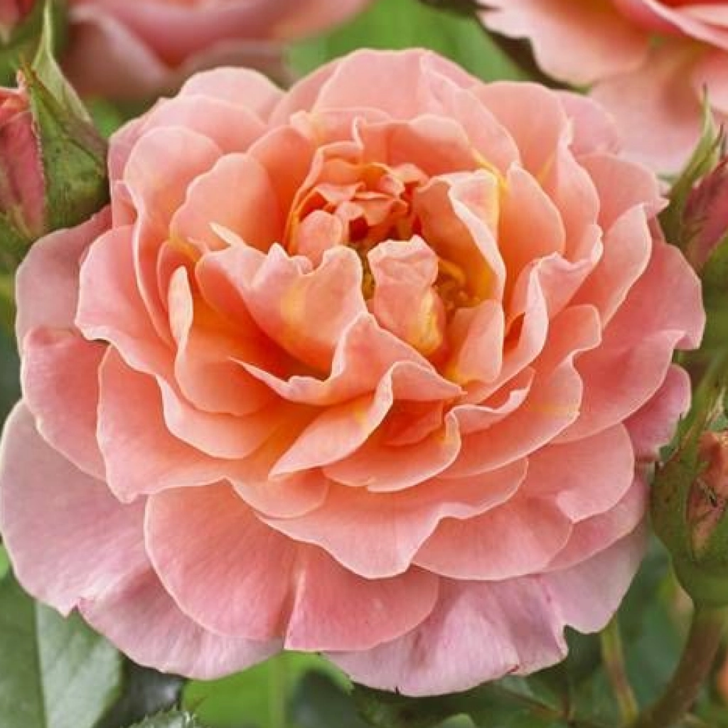 Csodaszép színek keveredése egyetlen virágban: réz, narancssárga és rózsaszín. Csokros, telt virágai kellemes, szegfűszeg illatúak. Folyamatosan virágzik, egészen az első fagyokig. Gyökércsomagolt rózsatövet küldünk.