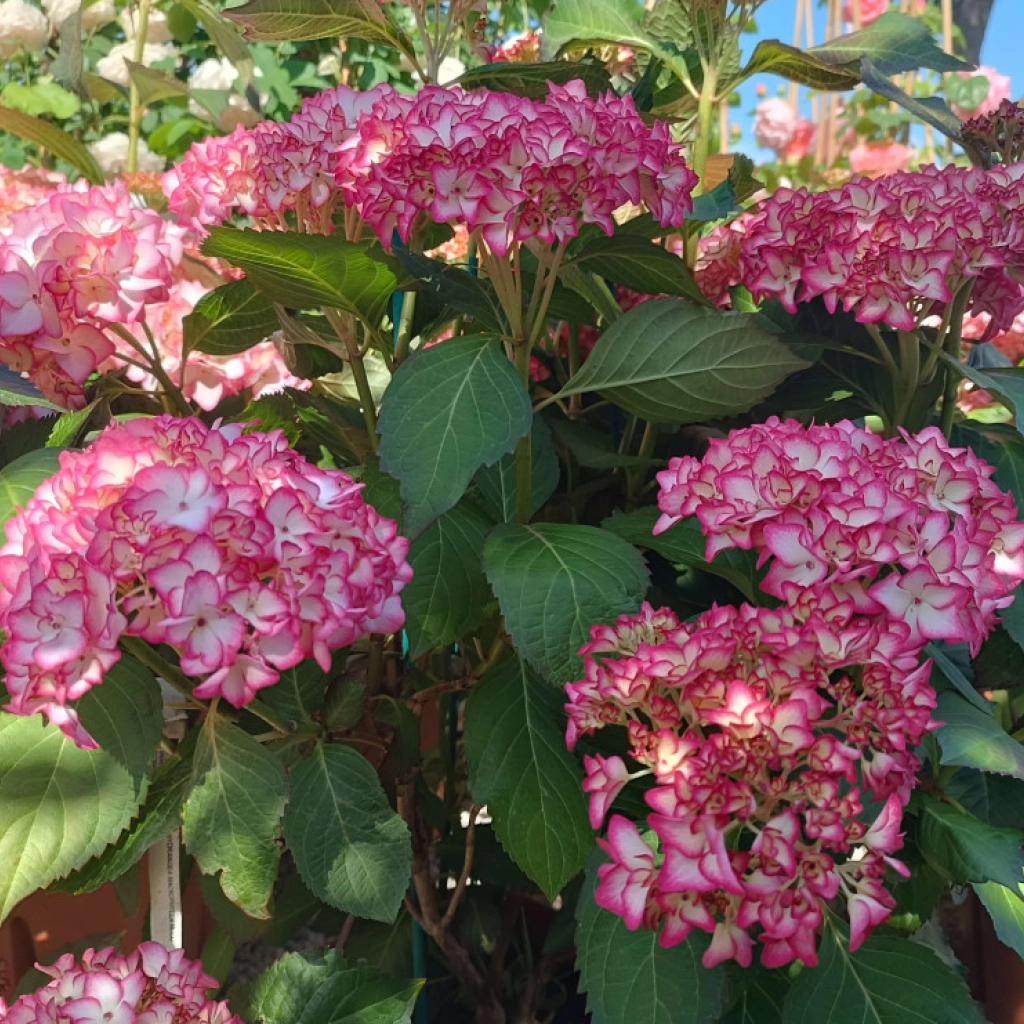 Ez a hortenzia színpompás látványt nyújt. A virágok eleinte krémfehér árnyalatúak, majd fokozatosan rózsaszín-pirosas szegélyt kapnak, amely az idő múlásával egyre hangsúlyosabbá válik. Ez a hatás hűvösebb időben és erősebb fényviszonyok mellett még látványosabb. A lombozat is évszakonként változik: a fiatal levelek bronzos színűek, ősszel pedig gyakran lilás tónusokat is felfedezhetünk bennük. Ez a kerti hortenzia félárnyekos fekvésen, savanyú, jó vízáteresztő talajban fejlődik a legszebben. A bő virágzás érdekében rendszeres öntözés ajánlott.