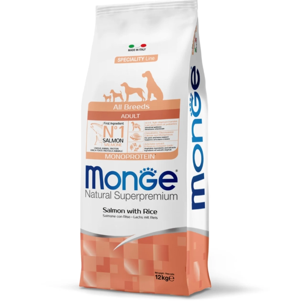 Kiváló minőségű, szuperprémium kutyatáp, kifejezetten ételintoleranciákra. A Monge szuperprémium kutyaeledel Lazaccal és Rizzsel nagyon könnyen emészthető alapanyagokból készül. A fő összetevő a lazac. Articsóka-, echinacea-, oregánó- és fokhagyma-kivonatot tartalmaz, amelyek serkentik az immunrendszert és védik a májat.