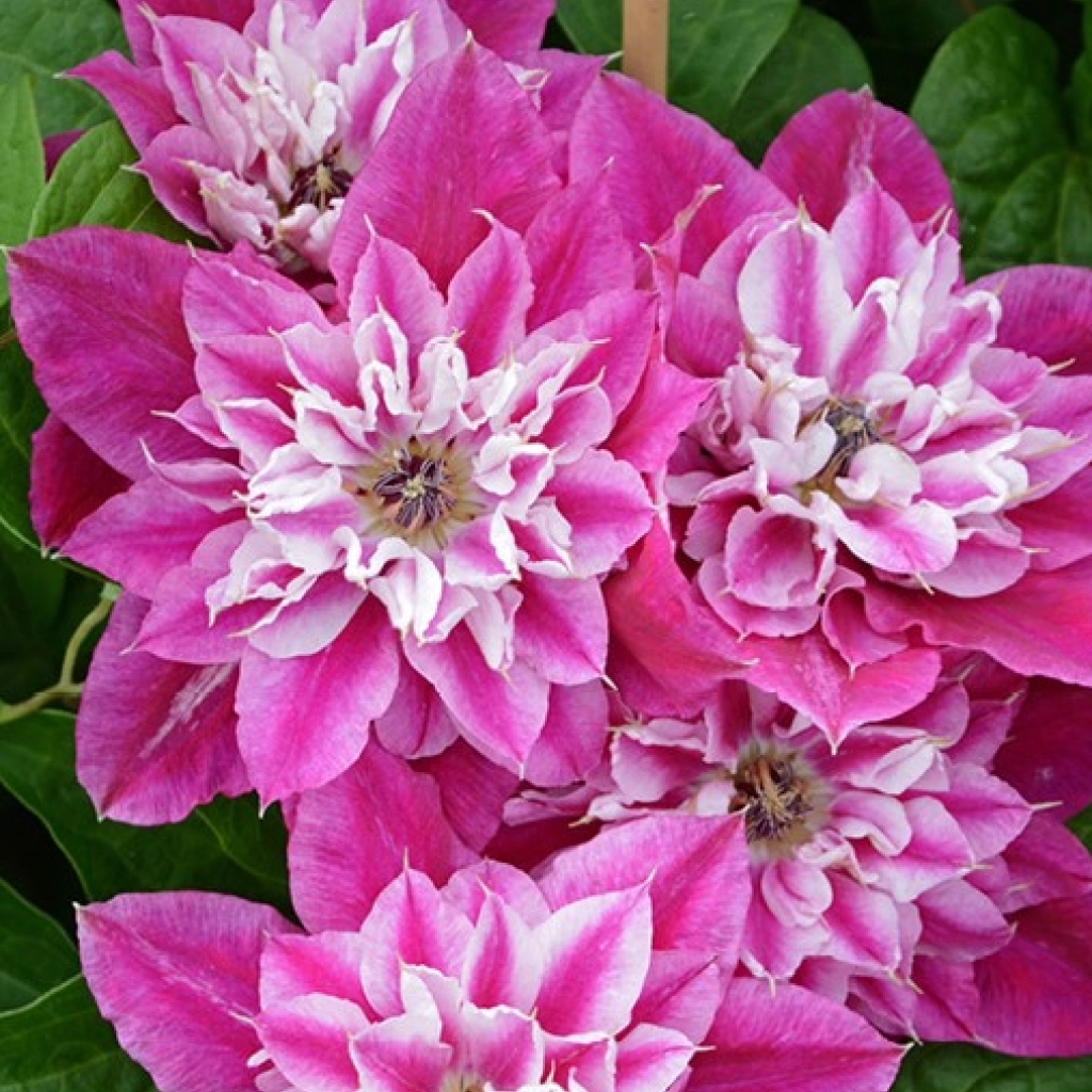 Hatalmas virága átmérője akár 18-23 cm is lehet, színe feltűnő: bíbor-piros, rózsaszín csíkokkal. Érdekessége hogy nyár elején jelennek meg a telt virágai majd ősszel a féltelt virágok. Konténeres növényeket küldünk.
