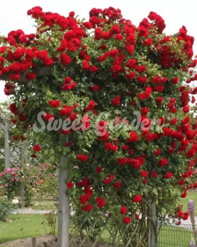 Piros, csodaszép virágai erős illatúak, nyár elején jelennek meg. Feltörő növekedésű fajta, 2,5-3,5 m-t is elérheti. Csodálatosan befutják a kerítéseket, oszlopokat, pergolákat.