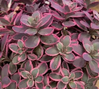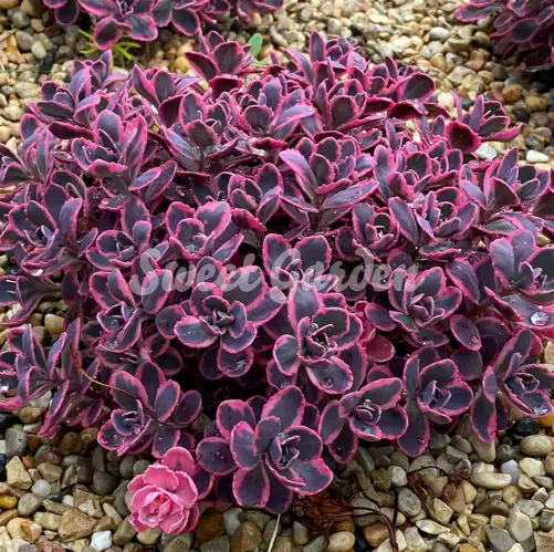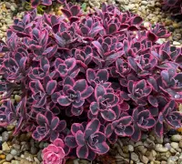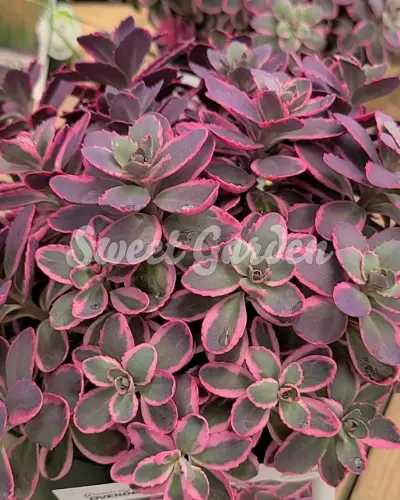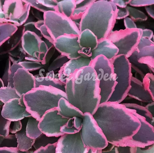Több faj keresztezésével létrejött hibrid, igen mutatós, háromszínű, tarka lombú fajta. Leveleinek szegélye krémfehér-rózsaszínes árnyalatú. Talajra nem igényes, ültethetjük sziklakertbe, vagy akár kőedénybe is. Világos, napos elhelyezést igényel.