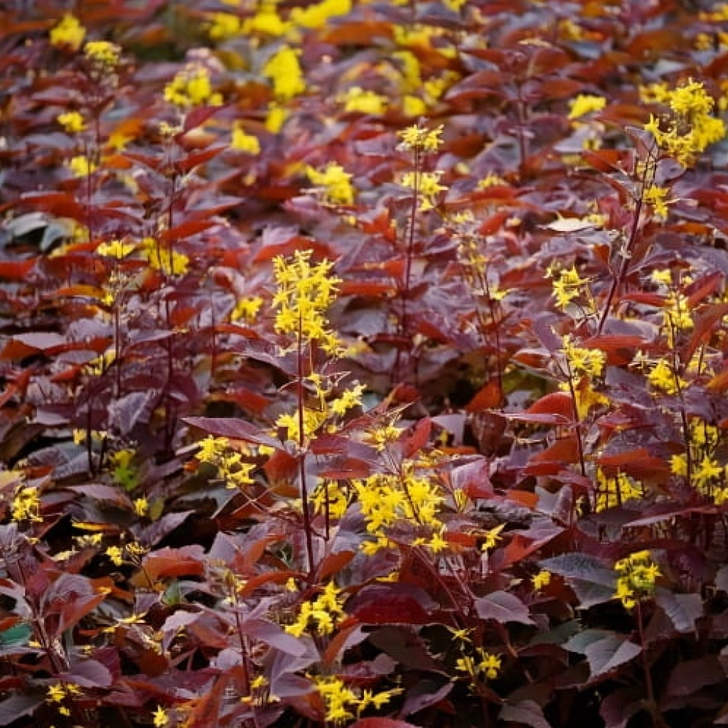 A sárgalonc kis vagy közepes méretű, könnyen gondozható és ellenálló díszcserje. A Troja Black fajta lombozatának színe évszakonként változik. Az új hajtások tavasszal lilás-bronzos árnyalatúak, nyáron sötétzöldek, ősszel pedig lilás-narancssárgák vagy vörösesek lesznek. Kénsárga virágai a nyári hónapokban nyílnak. Szoliterként, csoportosan vagy akár alacsony sövényként is ültethető. Napos vagy félárnyékos helyekre is ültethető, viszont arra érdemes figyelni, hogy a növény színei napsütésben lesznek a legintenzívebbek.