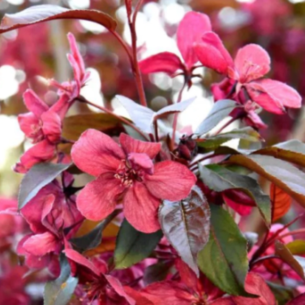 A vöröslevelű díszalma nemcsak tavaszi virágzásával, hanem színpompás lombjával is díszíti a kertet. Tavasszal és nyáron levelei zöld és bíbor árnyalatokat öltenek, ősszel pedig élénk vörösre színeződnek. Április–májusban látványos, bíborpirosvirágok lepik el, amelyek gyengéd illatukkal vonzzák a méheket. Később apró, dekoratív, sötétpiros termései díszítik az ágakat, melyek gyakran télig a fán maradnak, és így a madaraknak is táplálékot nyújtanak. Mivel nem nő túl magasra és nem terebélyesedik el, a díszalma kisebb és közepes méretű kertekbe is jól illik. Napos helyre ültetve fejlődik legszebben.