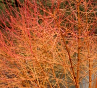 Közepes méretű, lombhullató díszcserje, mely évszakonként más színű köntösbe öltözik. Tavasszal és nyáron a világos narancssárga ágakon hegyes végű, ovális levelei zöldellnek, majd ősszel piros, réz és aranysárga árnyalatokat öltenek. A lombhullatást követően is különleges látvány a tűzcsóvákra emlékeztető pirosas narancssárga szárak sokasága. Napos helyre ajánlott ültetni, de a félárnyékos helyeket is tolerálja. Lehet szoliternek, csoportosan vagy más dísznövényekkel kombinálva ültetni.