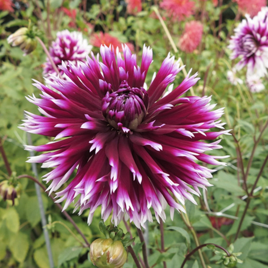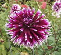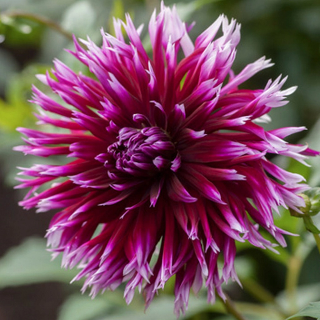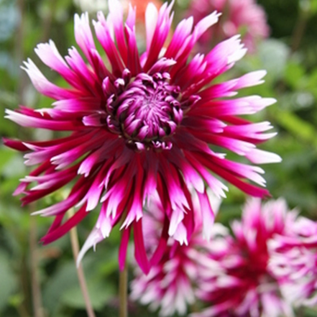 Káprázatos színek sokasága jellemzi ezt a dáliát. A hatalmas virágok közepe sötét lilásbordó, kifele haladva a rojtozott szirmok rózsaszínbe mennek át, szélük pedig fehér. Virágzáskor izgalmas látványban lesz részünk! A csomag 1 gumót tartalmaz.