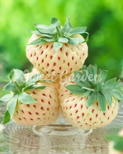 Az Ananas eper gyümölcsei teljesen fehérek, felszínüket pedig piros magok díszítik. A közepes méretű, lédús termések édesek és különleges zamatúak, ízük az ananászhoz hasonló. Friss fogyasztás mellett különleges lekvár vagy desszert alapanyaga lehetnek, a hagyományos, piros fajtákkal kombinálva pedig fantasztikus kontrasztot hoznak létre sütemények díszelemeként. Júniusban érő fajta. Egy csomag 5 db-ot tartalmaz.