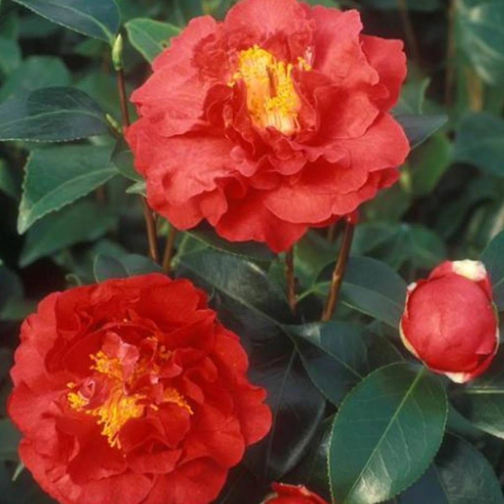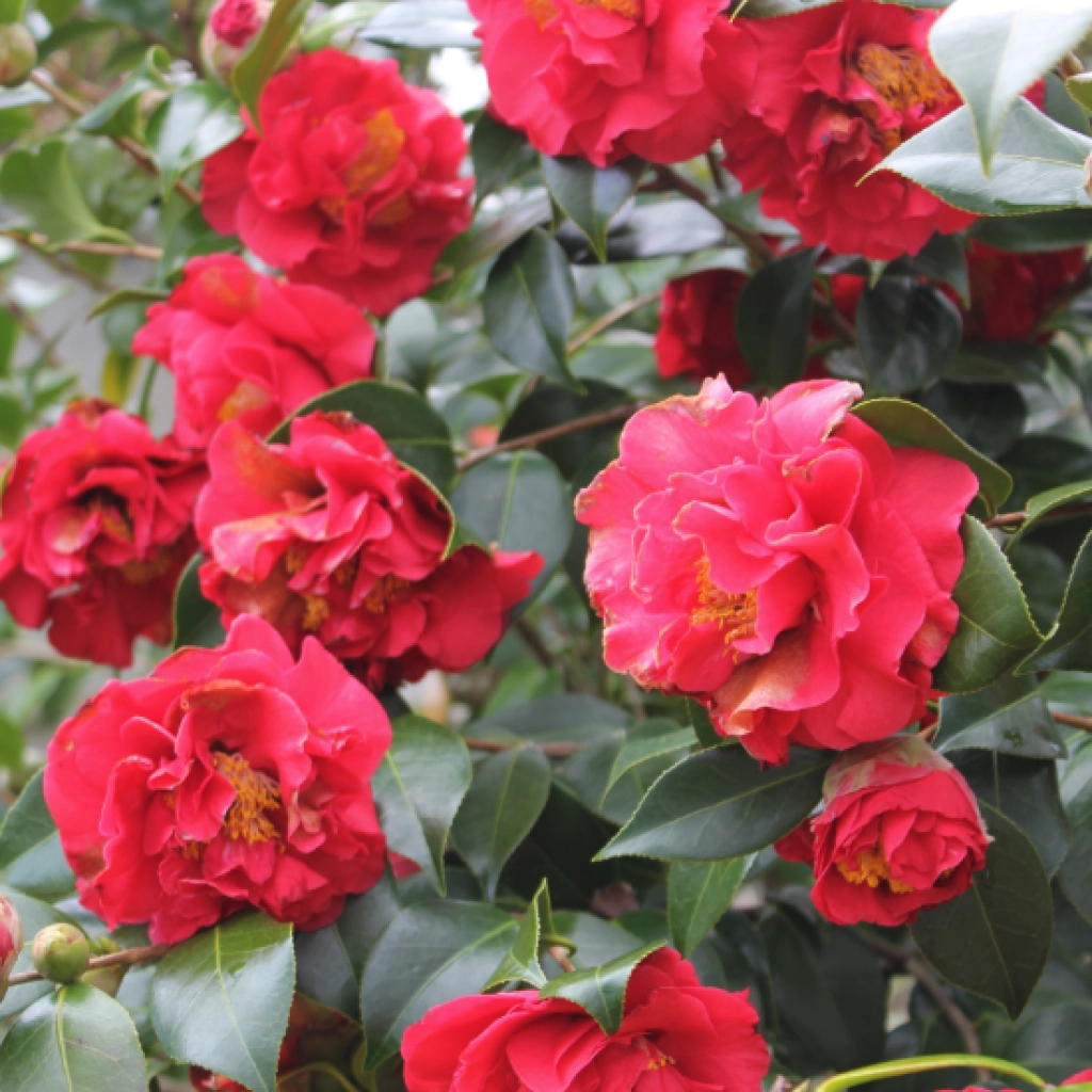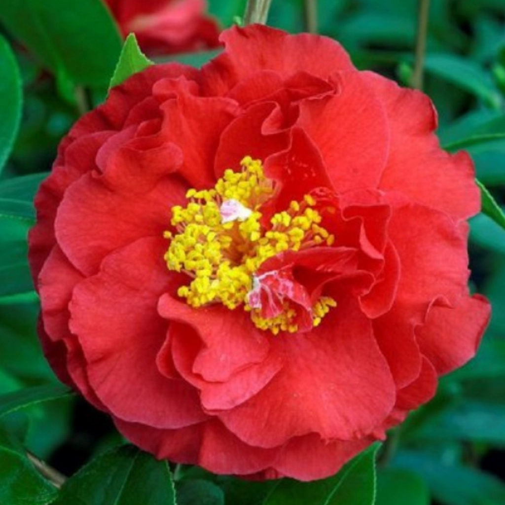 Egy csodálatos, örökzöld díszcserje. Az élénkpiros szirmok nagyon sűrűn helyezkednek el, kompakt, nagy virágfejet alkotva. Kora tavasszal virágzik. Szoliterként ültetve csakúgy, mint más növényekkel együtt igen jól mutat. Szép, konténeres növényeket küldünk.