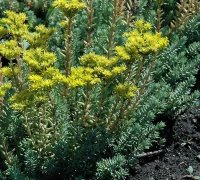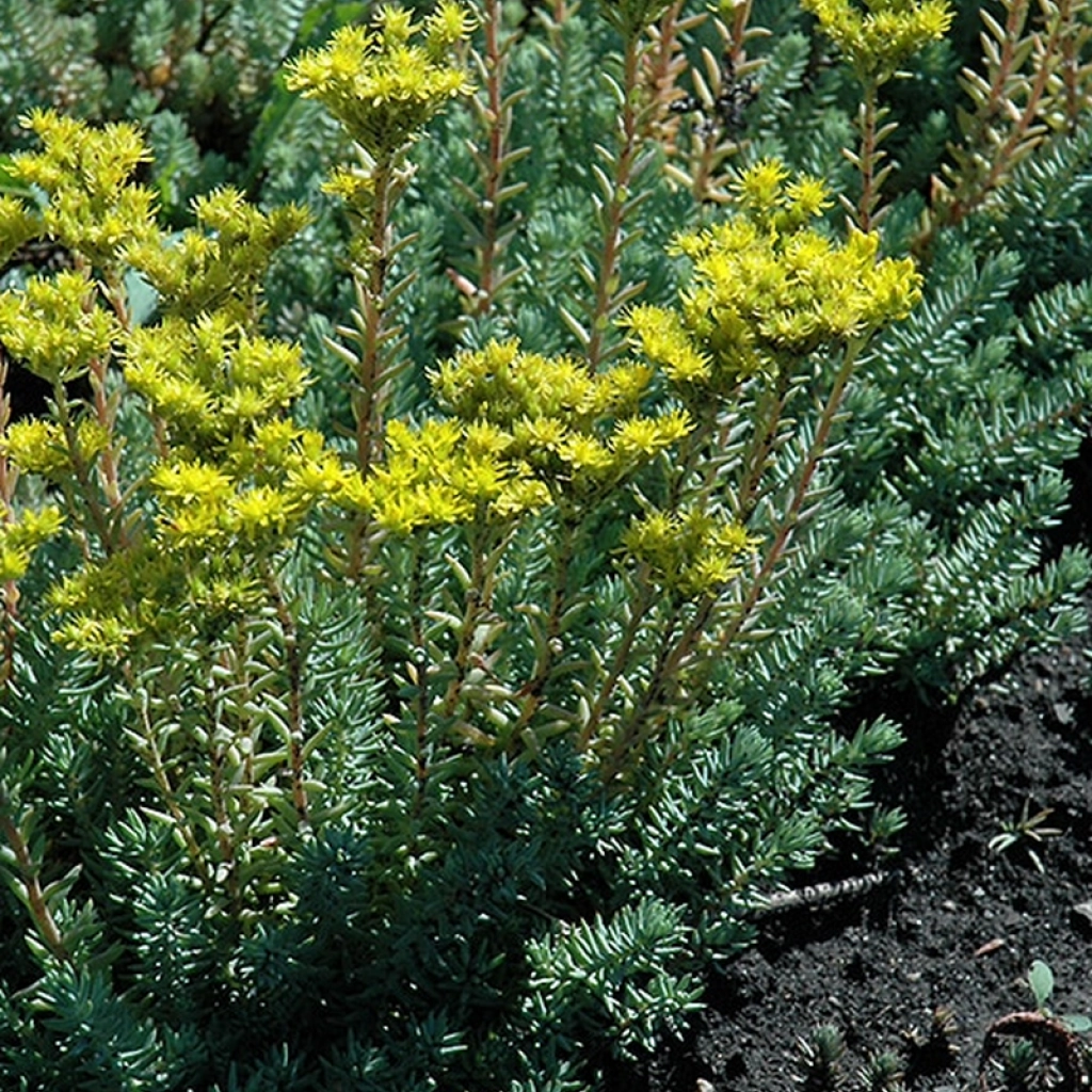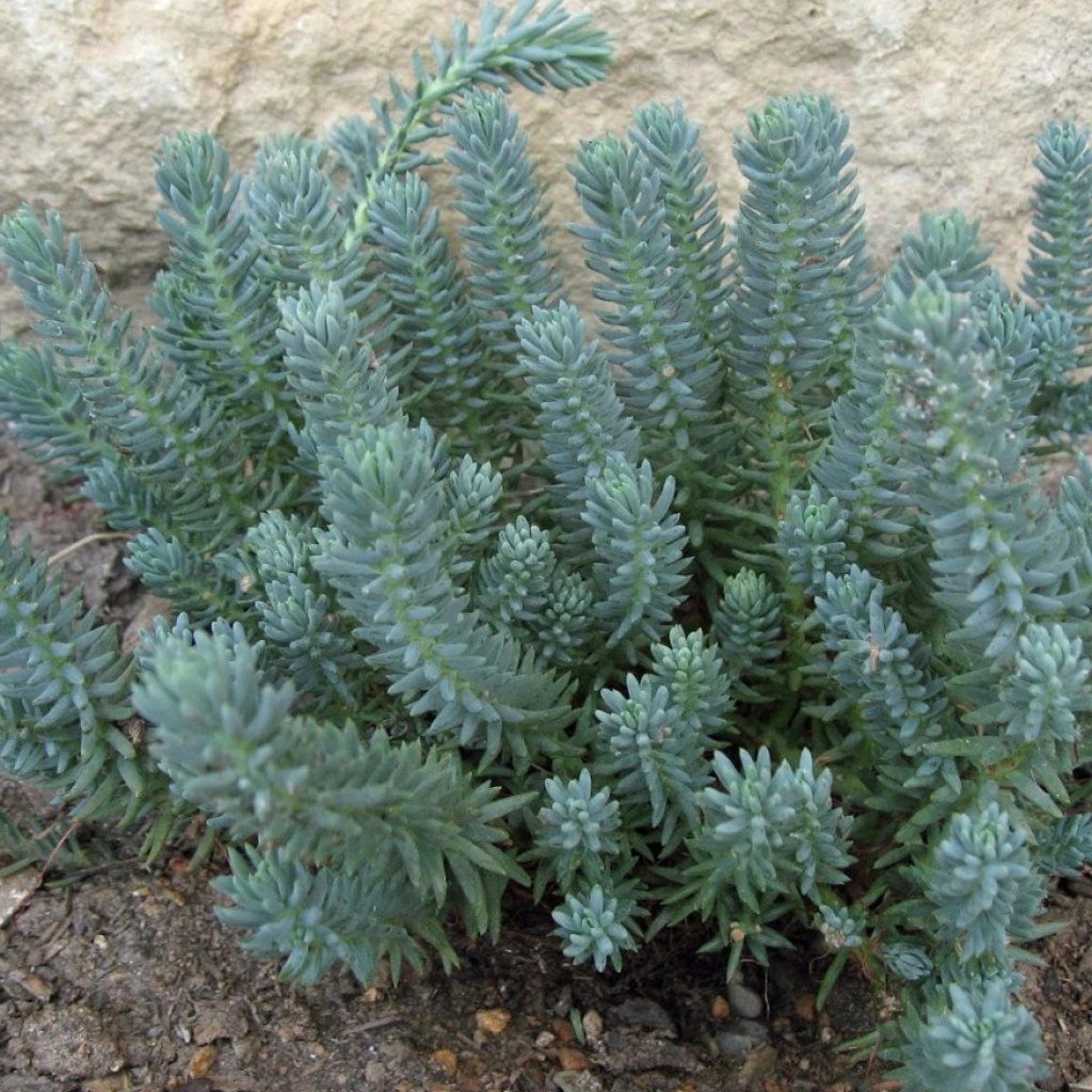E varjúháj keskeny, kékeszöld levelei sűrűn helyezkednek el a szárakon, és egy miniatűr lucfenyőre emlékeztetnek. A növény gyorsan terjed a talajon. Sűrű és egyenletes, 15–20 cm magas lombszőnyeget képez, amely egész évben díszít. Nyáron apró, aranysárga virágok jelennek meg a kékes lombozat fölött, amelyek vonzzák a méheket és a pillangókat. A tél beköszöntével a levelek lilás és rózsaszínes árnyalatokat öltenek. Ez a varjúháj szárazságtűrő, és nagyon jól bírja a kemény fagyokat. A homokos vagy kavicsos, jó vízelvezetésű talajokat kedveli. Minél szegényebb a talaj, annál kompaktabb és szebb a növény. Ideális választás sziklakertekbe és szegélyek mentén. Cserépben is remekül fog mutatni a teraszon.