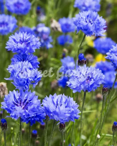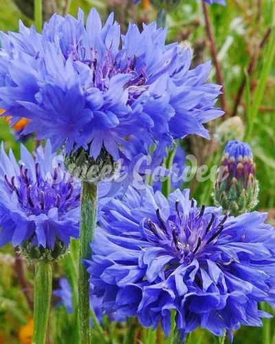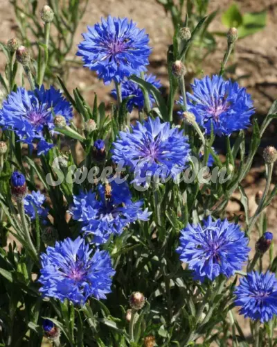 A hazánkban honos kék búzavirág telt virágú, 80-90 cm magas kerti fajtája kedves dísze lesz udvarunknak, emellett igen hálás vágott virág. Hosszú, merev szárakon a szürkészöld levelei fölött jellegzetes fészekvirágzatot hoz. Márciusban állandó helyükre vetve május-júniusban, őszi vetés esetén már májusban virágzanak. A napos, világos elhelyezést kedveli.