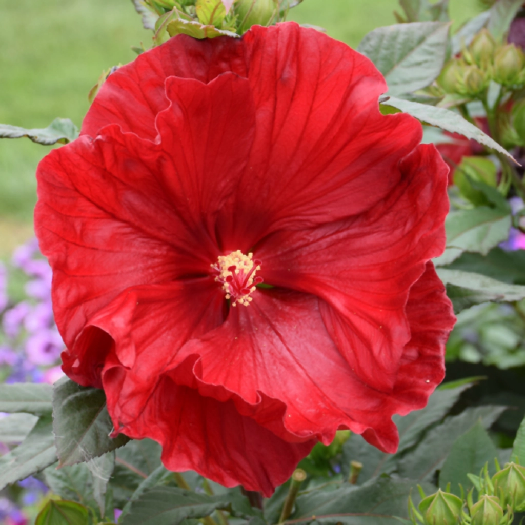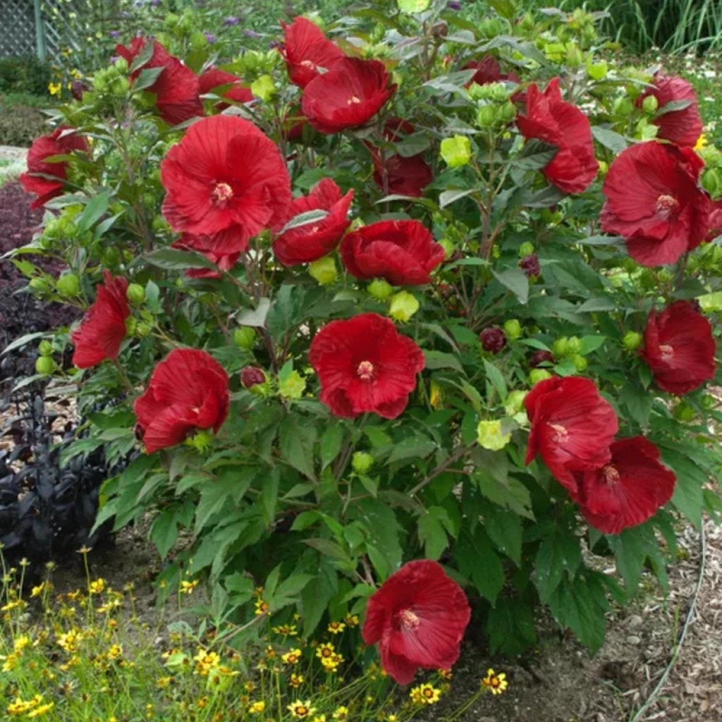 Ez a hibiszkusz fajta nagy, 15–20 cm-es, enyhén csészés alakú virágokat hoz, élénk skarlátvörös színben, közepükön hangsúlyos sárga porzóval. Virágzása hosszan tart, a nyár közepétől egészen az első őszi fagyokig. Virágai mágnesként vonzzák a pillangókat és a méheket. Tavasszal a friss hajtások bronzos-réz színben jelennek meg, majd a levelek zöldre váltanak, enyhe lilás beütéssel, sűrű és fényes lombot alkotva. Napos fekvést és jó vízáteresztő talajt igényel.