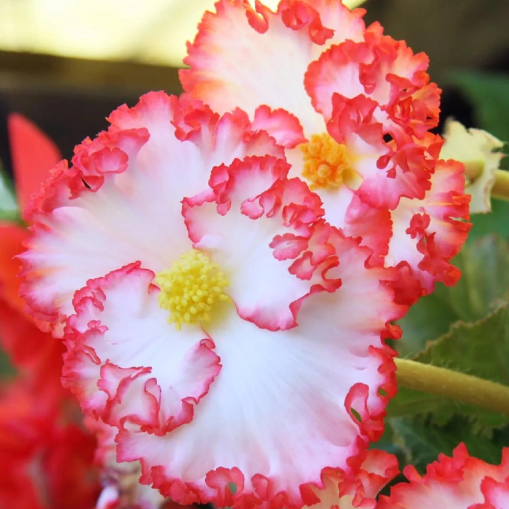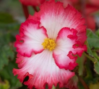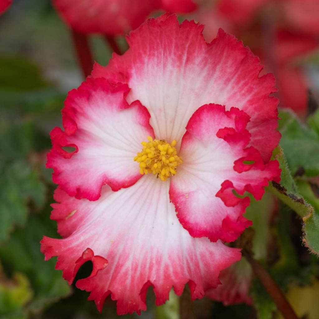 Ez a begónia tetszetős, fehér-piros virágaival kelti fel az érdeklődést. A szirmai hullámosak. Balkonládában és nagyobb edényekben különösen látványos, ahogy a virágok tömege szinte teljesen eltakarja a leveleket. A begónia virágzási ideje hosszú, a tavasz végétől az őszi lehűlésig tart. Lombja fényes sötétzöld levelekből áll, amelyek jól kiemelik a vidám virágokat. Félárnyékos vagy árnyékos fekvésen fejlődik szépen. A csomag 3 begónia gumót tartalmaz.
