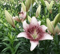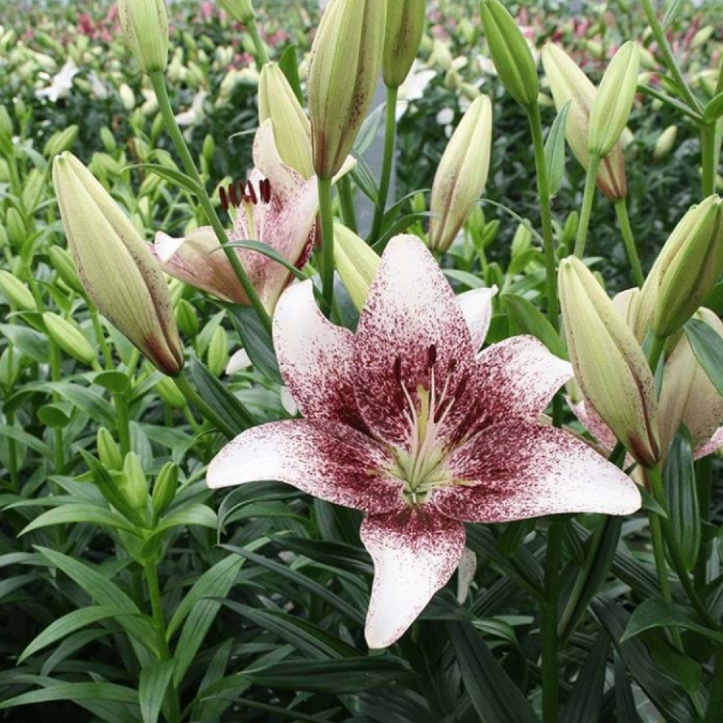 Ez a látványos ázsiai liliom páros drámai kontrasztot hoz a kertbe. A sötétlilás-fekete virágok titokzatos eleganciát sugároznak, amelyet a páros másik tagjának fehér virágai gyönyörűen egészítenek ki. A fehér virágok szépségét tovább emeli, hogy szirmait sötét pöttyök tarkítják. Ez a két fajta együtt lenyűgözően mutat, és kifinomult megjelenést kölcsönöz a kertnek. A liliomok csokrok vagy virágkompozíciók készítésére is használhatók. Napos helyre, jó vízelvezetésű talajba ajánlott ültetni. A csomag 2 virághagymát tartalmaz.