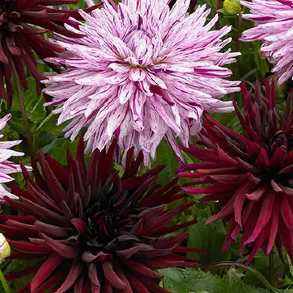 Romantikus színek találkozása: a Chat Noir mélybordó, csaknem fekete színben tündököl, míg a bájos, halványlila virágú Hy Trio szirma fehérrel csíkozott. A csomag 1 darab Chat Noir és 1 darab Hy Trio gumótt tartalmaz.