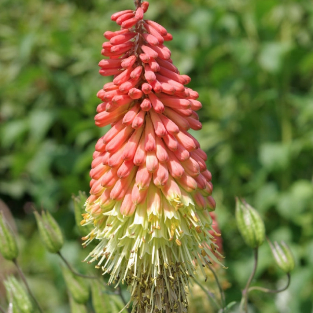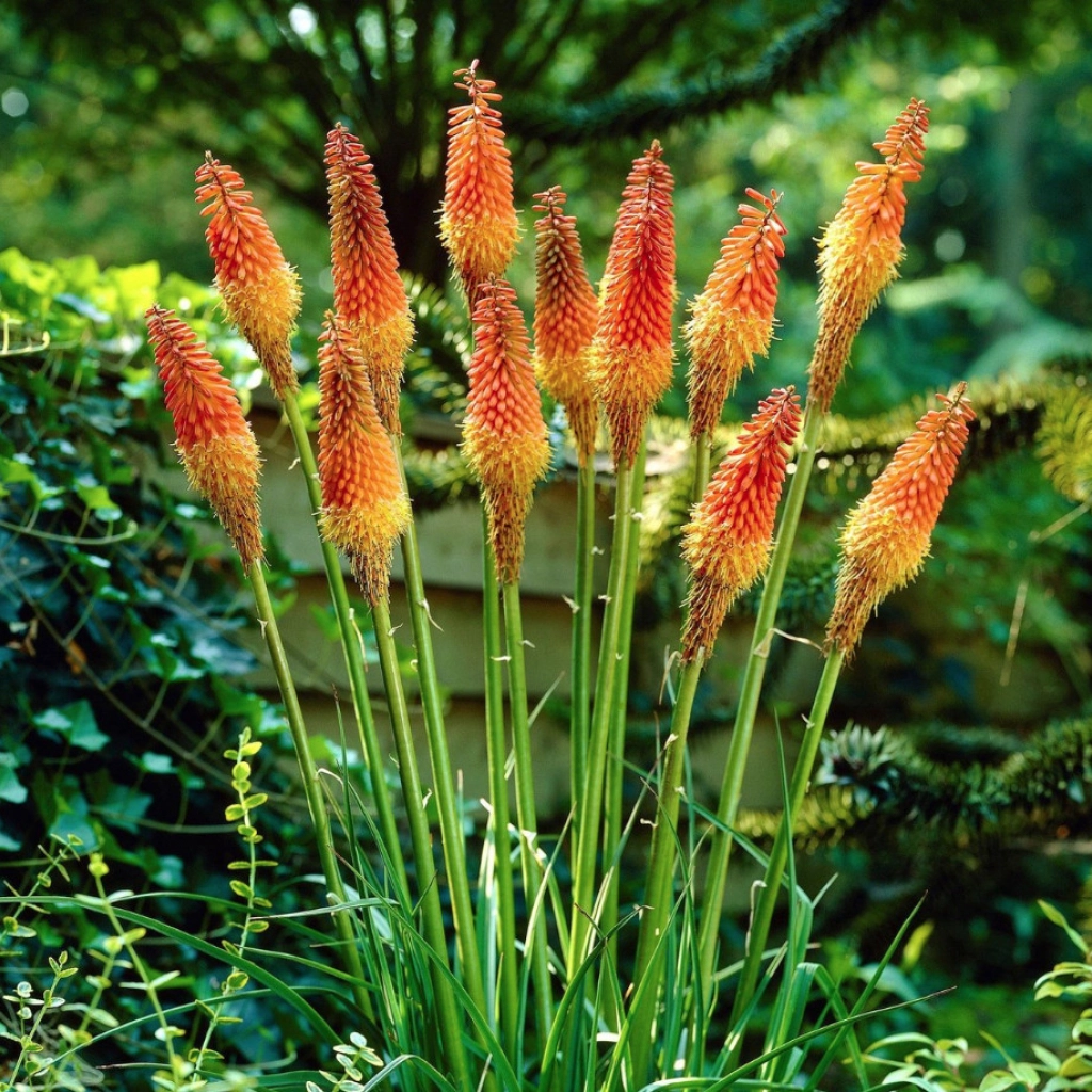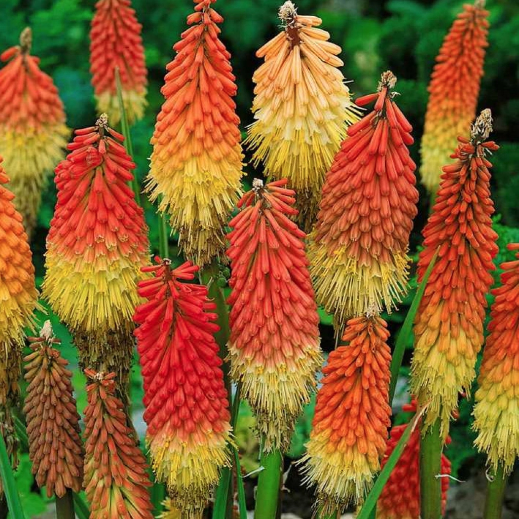 Ez a figyelemfelkeltő növény élénk színű virágzatáról híres. A virágok csőszerűek, sűrűn helyezkednek el a virágszáron, és virágzásuk során színüket pirosról narancssárgára, majd sárgára változtatják. Ahogy a növény neve is mutatja, kinézete egy fáklyáéra emlékeztet. A növény egész nyáron át virágzik. Könnyen gondozható évelő, melyet jó vízáteresztésű talajba ajánlott ültetni. Napos fekvésre van szüksége ahhoz, hogy látványosan virágozzon. A csomag 1 rizómát tartalmaz.