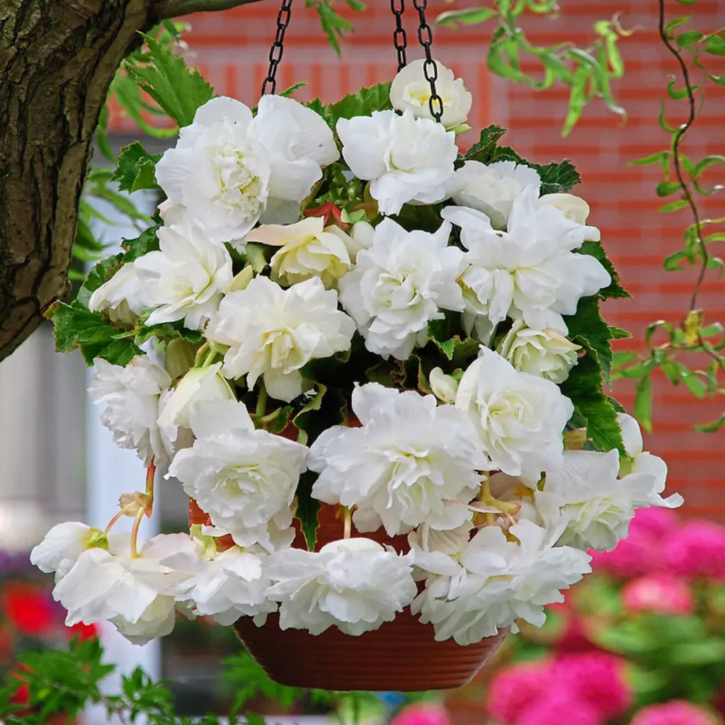 Rendkívül dekoratív, hófehér virágú fajta! A tavasz végétől az őszi fagyokig folyamatosan nyílnak csodaszép, mutatós virágai. Kiváló választás teraszok és erkélyek díszítésére, csüngő virágai remekül fognak mutatni függő virágtartókban. A csomag 3 darab gumót tartalmaz.