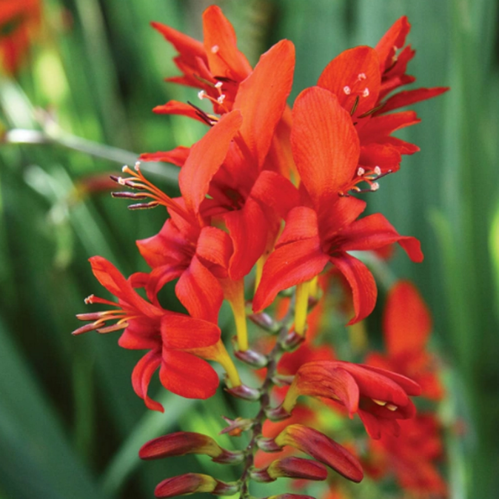 Ez a sáfrányfű trópusi megjelenést kölcsönöz a kertnek. Bőségesen virágzik a nyár derekától kora őszig. Vörös bimbóiból pirosas-narancssárga virágok nyílnak. A növény hosszú, vékony, élénkzöld levelei szépen kiegészítik a virágokat, amelyeket vágott virágként is használhatunk, hogy egy kis egzotikus hangulatot vigyünk otthonunkba nyáron. A sáfrányfű könnyen gondozható évelő, ideális választás virágszegélyekbe és különböző méretű kertekbe. Napos helyre, jó vízelvezetésű talajba ajánlott ültetni.