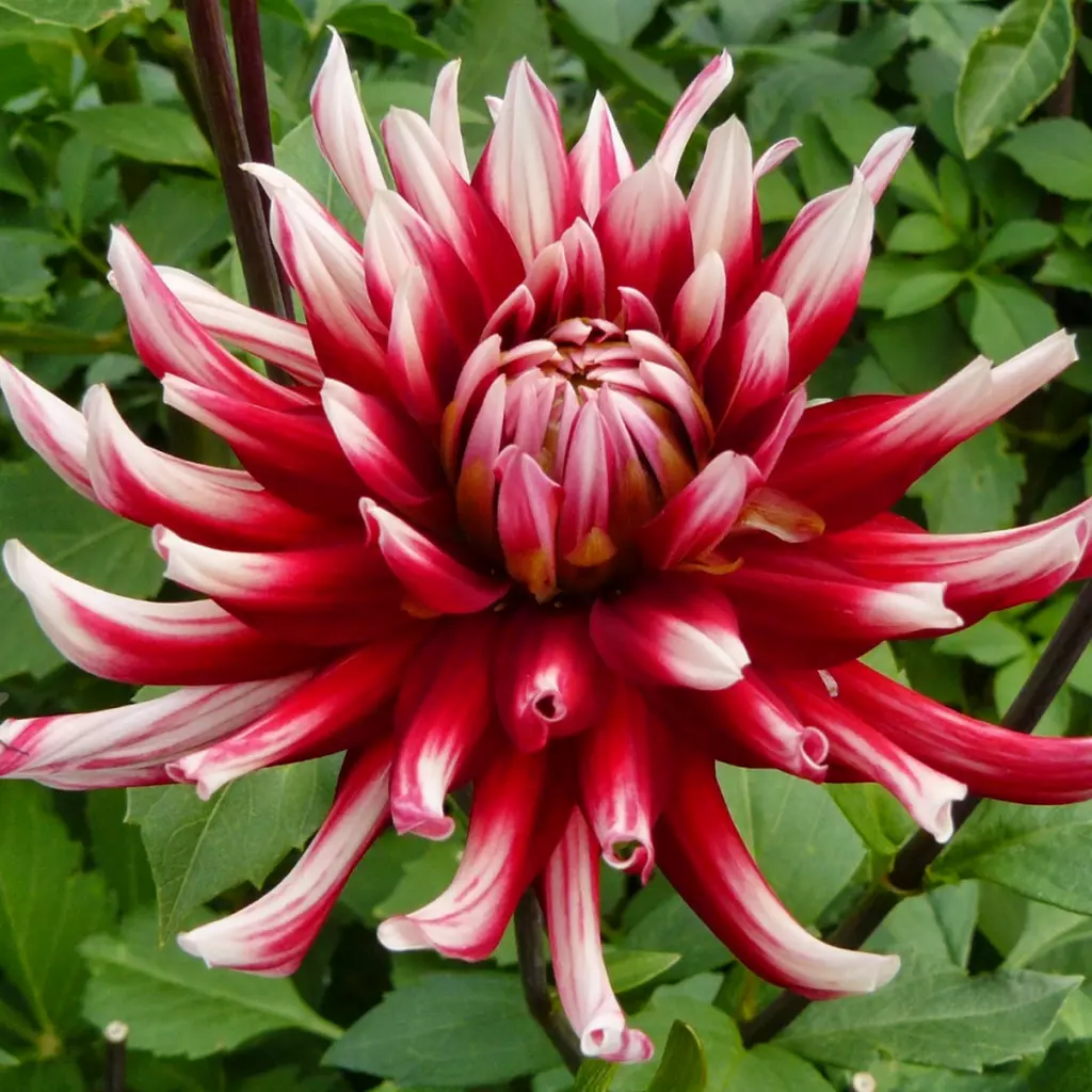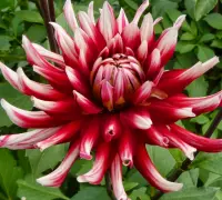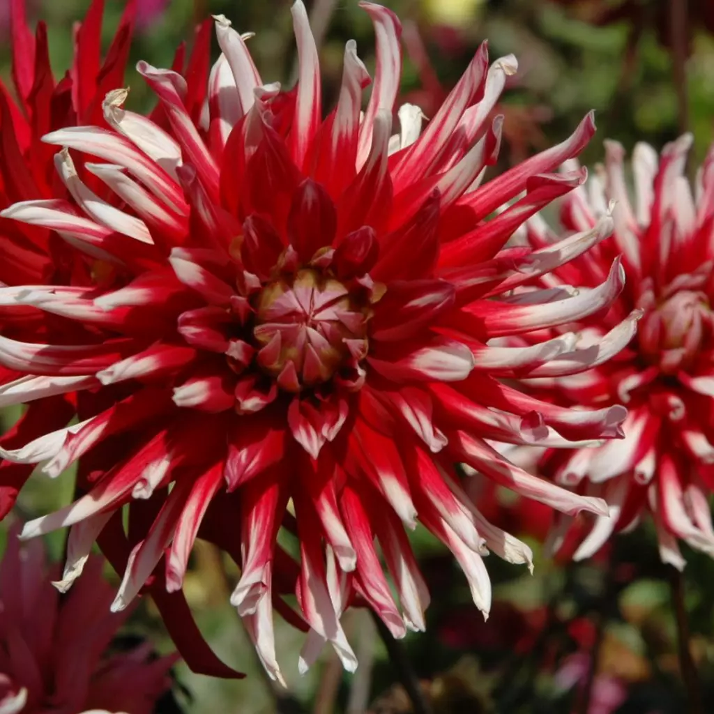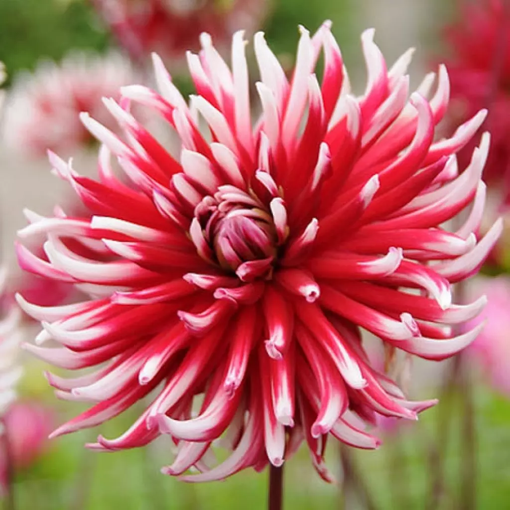 Egy különleges kaktuszdália, melynek szirmai fehér-piros színben pompáznak. A hatalmas virágok csodásan díszítenek egyaránt a vázában és a kertben. A csomagban 1 rizómát található.