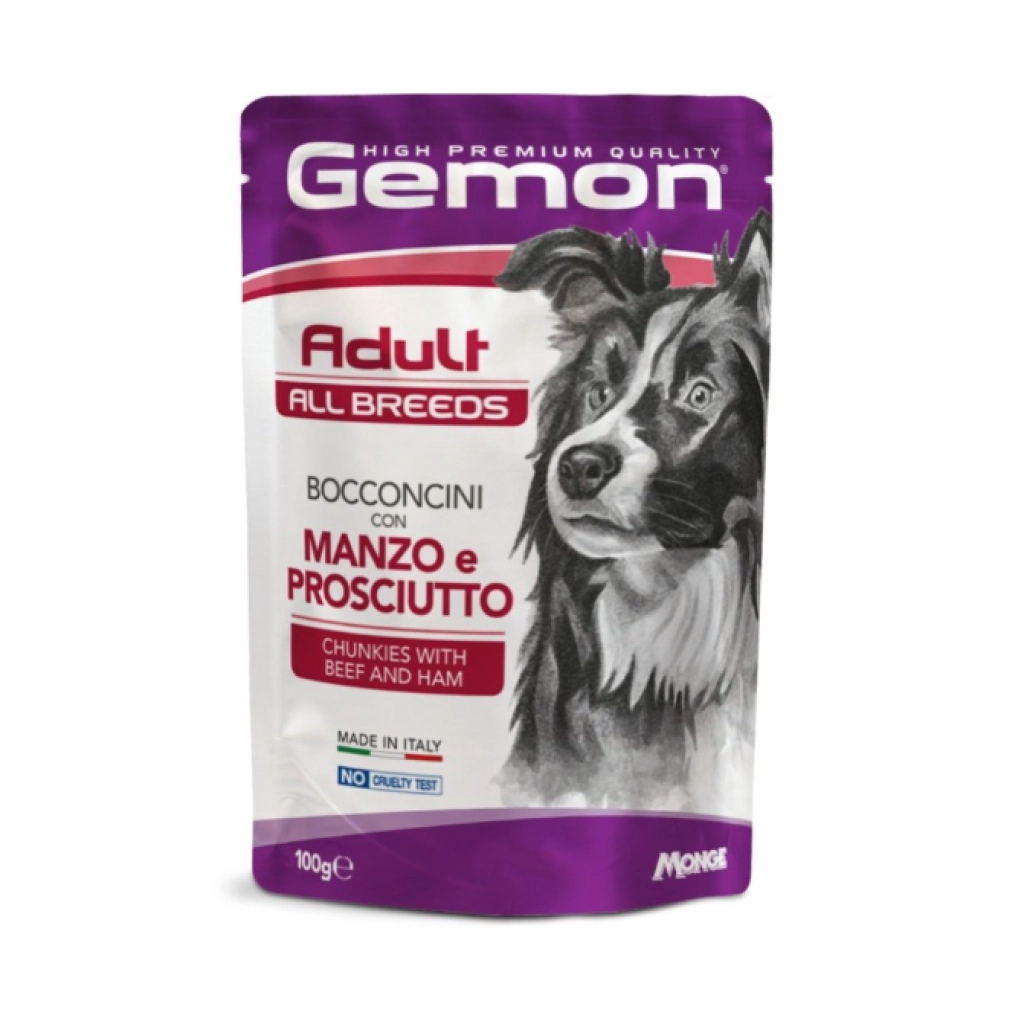 A Gemon Dog Adult Pouches-Chunkies Marha - Sonk egy teljes értékű eledel minden méretű kutyák számára, amely úgy lett kifejlesztve, hogy biztosítsa a szükséges tápanyagokat négylábú barátaink napi vitalitásához.