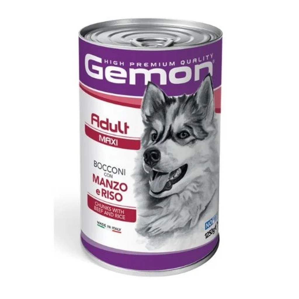 Gemon Dog Maxi Adult Konzerv húsdarabokkal Marha-Rizs 1250 g