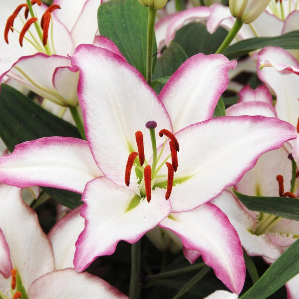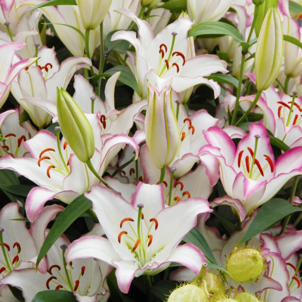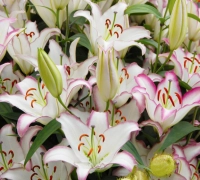 A Hotline liliom nagy, illatos virágai tökéletesen mutatnak virágkompozíciókban és pazar csokrok készíthetők belőlük. A szatén tapintású virágai tündöklően fehér szirmokból állnak, amelyeket a szirmok szélén húzódó, nőies lilásrózsaszín árnyalat emel ki. Ez a keleti liliom 1 m magasra nő. Szoliternek vagy csoportosan is ültethetjük, hogy kiemeljük szépségét. Napos helyre, jó vízáteresztésű talajba ajánlott ültetni. A csomag 1 db virághagymát tartalmaz.