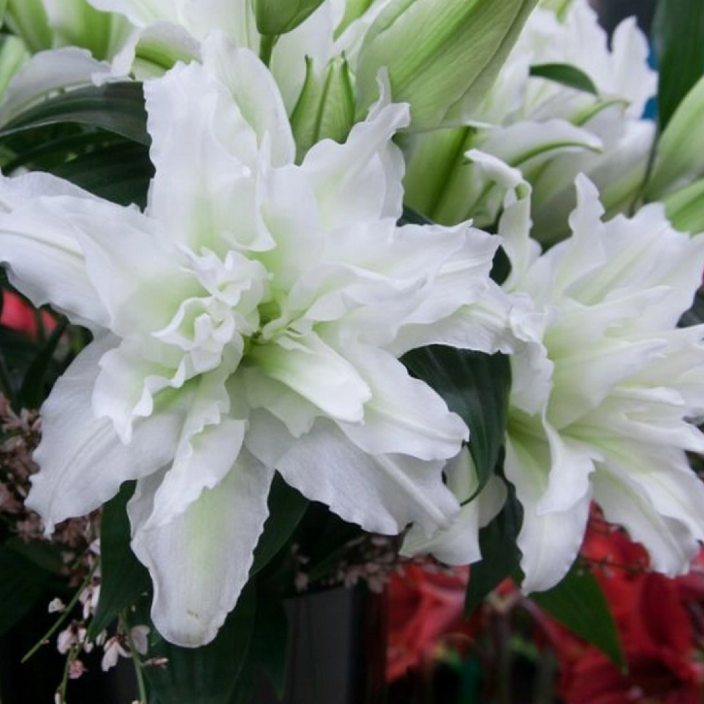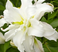 Orientál hibrid, óriási telt virágokkal. Hamvas szépsége és tisztasága magával