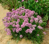 Ez a kisebb termetű díszhagyma nyáron virágzik. Alacsony termete miatt elsősorban az ágyások szegélyében vagy kisebb kertekben érvényesül igazán, de cserépben is szépen fejlődik. Bájos virágzata kis gömbökre hasonlít. A virágok rózsaszínes-lila árnyalatokból sötétebb lilára színeződnek. Napos helyen, jó vízáteresztő talajban fejlődik a legszebben.