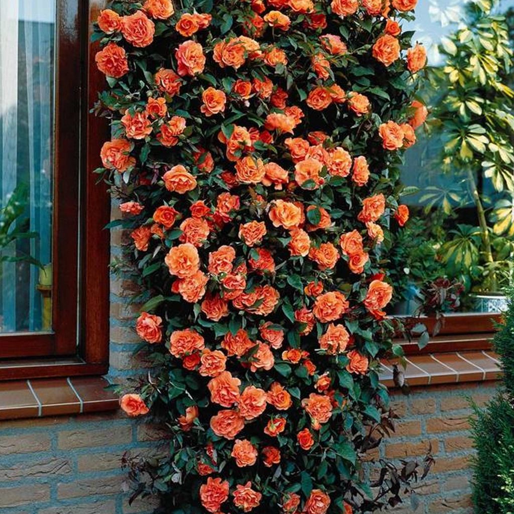 Bámulatos futórózsa, mely felvidítja a kertet. Narancssárga virágai nagyok és