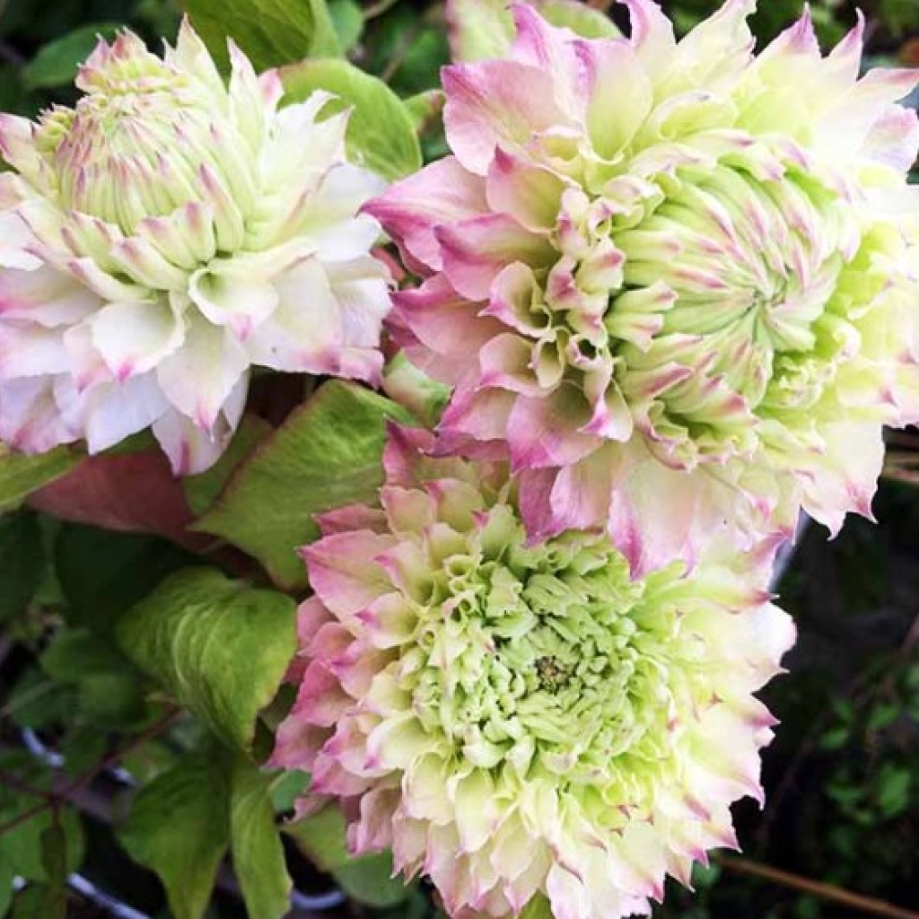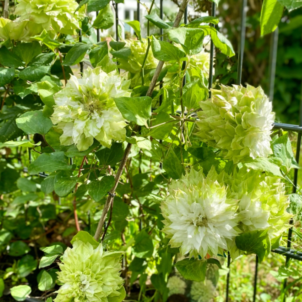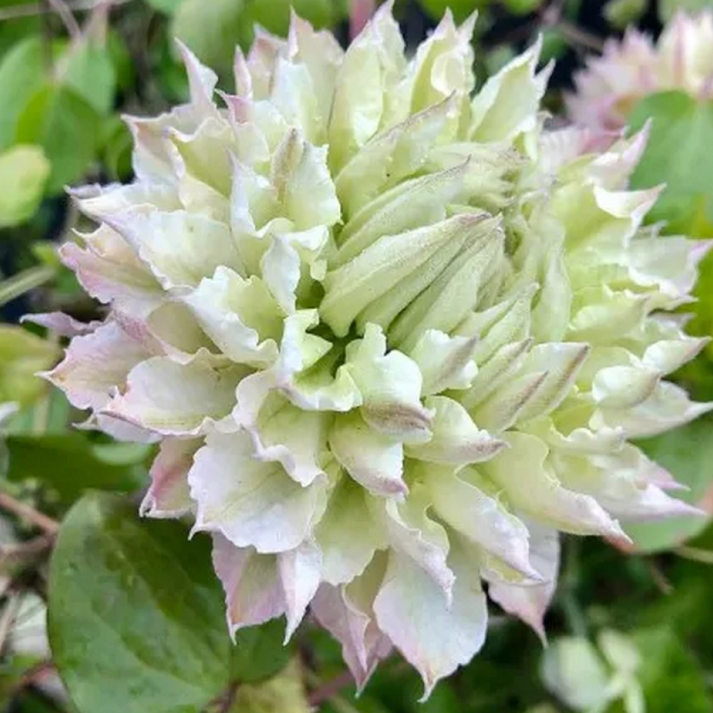 Lenyűgöző, japán klemátisz, zöld, rózsaszín és fehér árnyalatú szirmokkal. Teljes virágzáskor a virágok színe fehér. Hatalmas, akár 12-15 cm átmérőjű, telt virágú fajta. Konténeres növényeket küldünk.