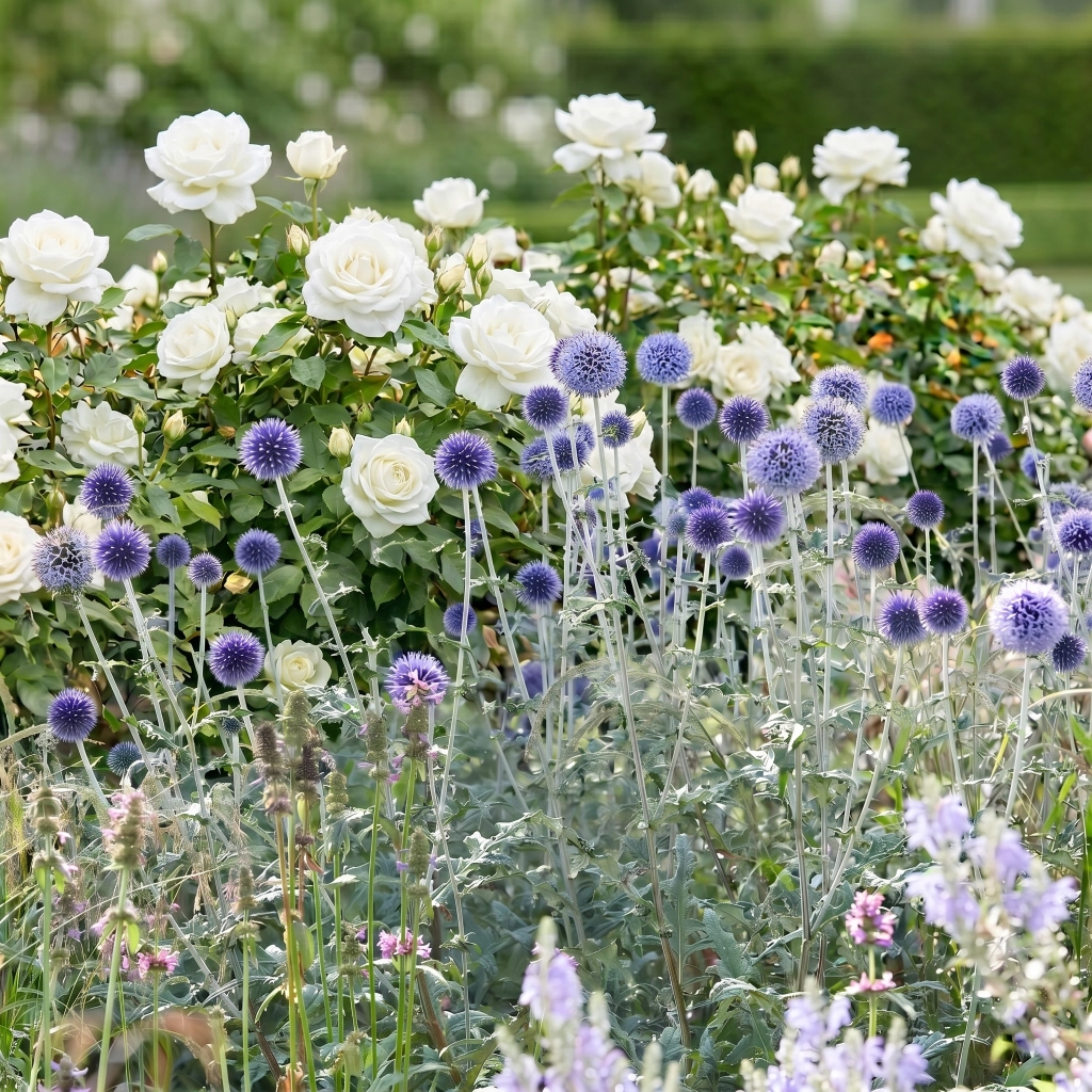 Ez a csomag jól érzékelhető kontrasztra épít, ami egyszerre teszi látványossá és kiegyensúlyozottá. A Bianca rózsa fehér virágai letisztult, elegáns megjelenést adnak, amit a szamárkenyér karakteres, gömb alakú, kék virágai tesznek izgalmasabbá. Ez a kombináció szépen egyensúlyoz a klasszikus és a modernebb kertstílusok között. A csomag 3 db Bianca gyökércsomagolt rózsát és 3 konténeres szamárkenyeret tartalmaz. Napos helyre, jó vízelvezetésű talajba ajánlott ültetni.