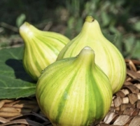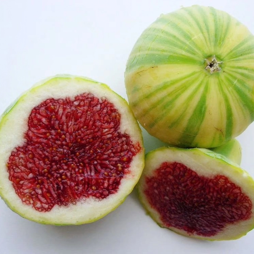 A füge egy édes gyümölcsű, mutatós növény, mely kertünknek mediterrán hangulatot kölcsönöz. Levelei sötétzöld színűek, gyümölcsének külseje sárga alapon zölddel csíkozott. A gyümölcs húsa ízletes, aromás, mézédes, sötét színű. Frissen is fogyasztható, vagy desszertek készítéséhez is felhasználható.