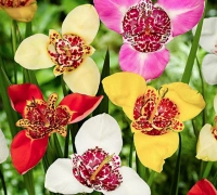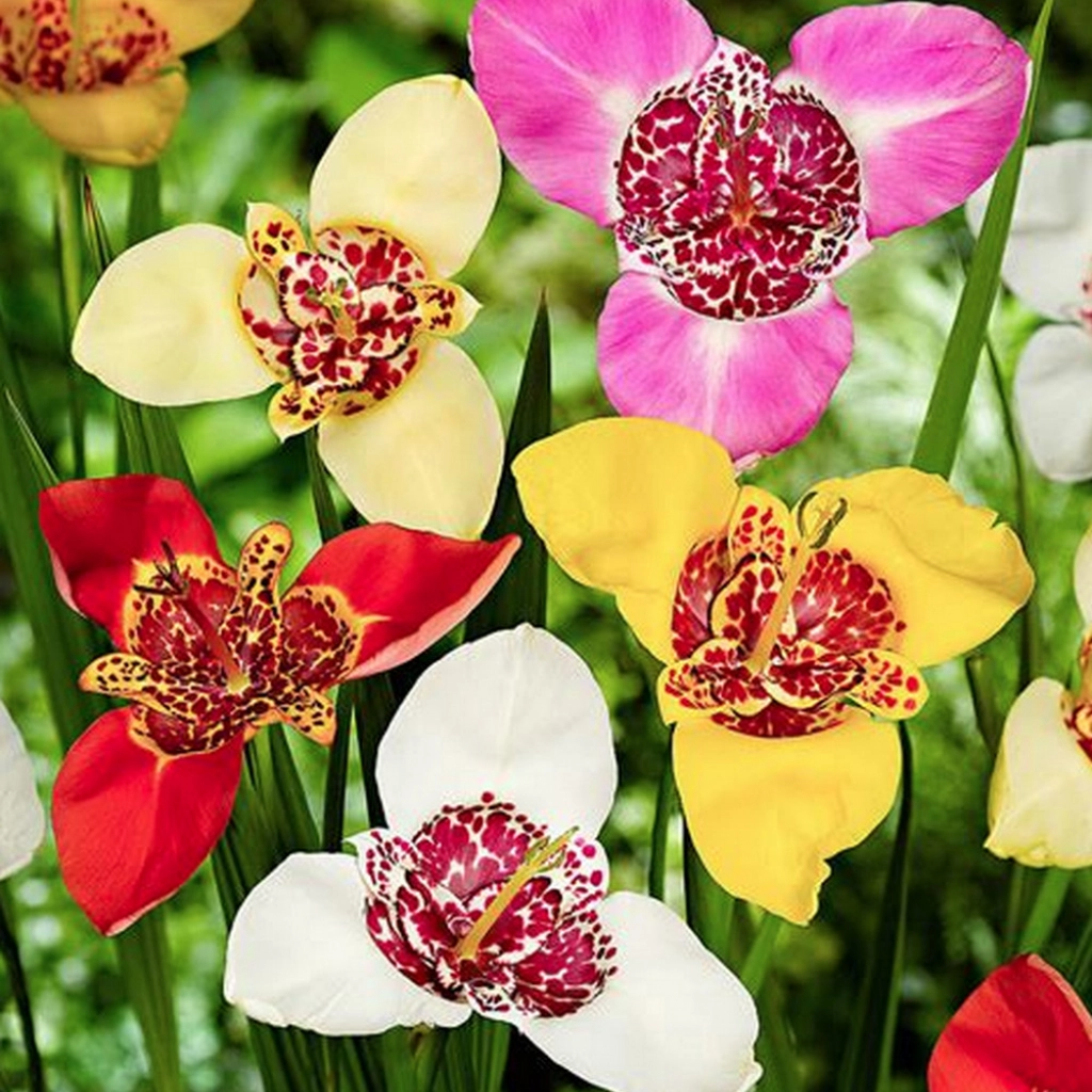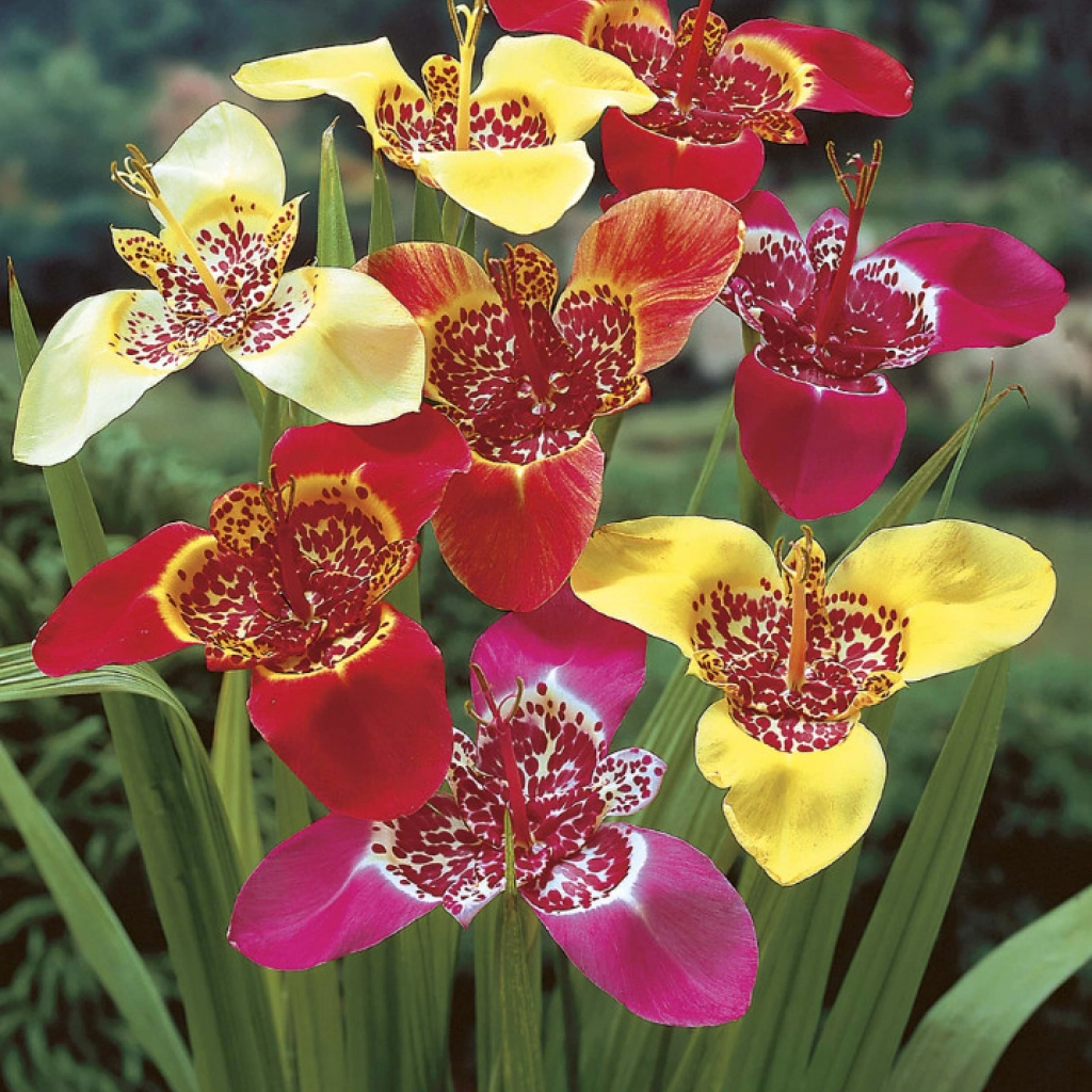 Egyedi megjelenésű virágai az orchideákat juttatják eszünkbe. Ezek lehetnek pirosak, rózsaszínek, sárgák vagy fehérek, szirmaik tövénél pöttyözött mintával. A virágok nem tartósak, általában egy nap alatt elnyílnak, azonban a növény az ősz beálltáig folyamatosan virágzik. Napos fekvést igényel. A csomag 10 virághagymát tartalmaz.
