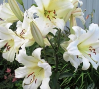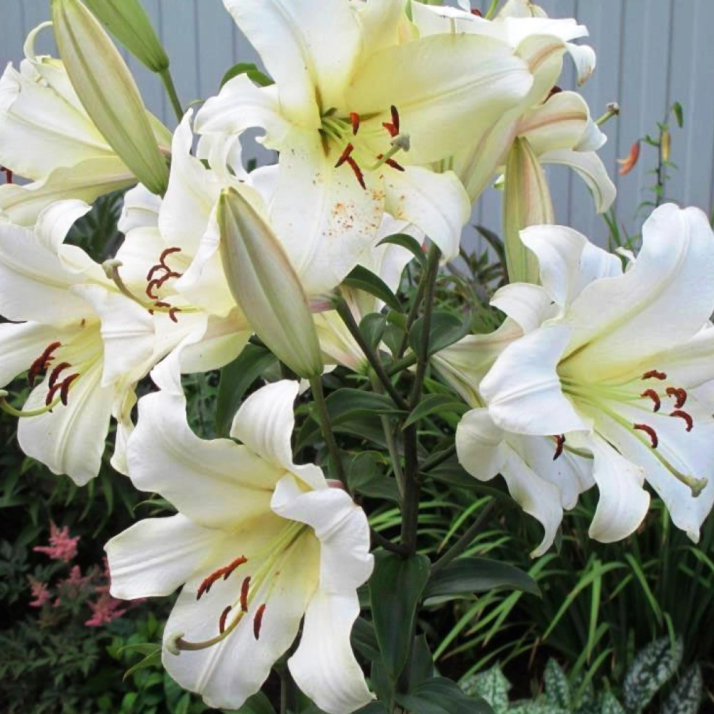 Kiváló fajta, amely a liliomok klasszikus eleganciáját impozáns termettel ötvözi. Nagy, vastag, viaszos szirmú virágai magas, egyenes szárakon nyílnak. A virágok alapszíne fehér, néha enyhe pasztell árnyalatokkal, a virág közepén világoszöld díszítéssel. A sötétzöld lombozat elegáns hátteret biztosít a virágoknak, amelyek beragyogják a kertet. Illatos fajta. Napos helyre ajánlott ültetni. A csomag 1 virághagymát tartalmaz.