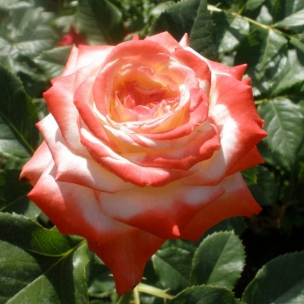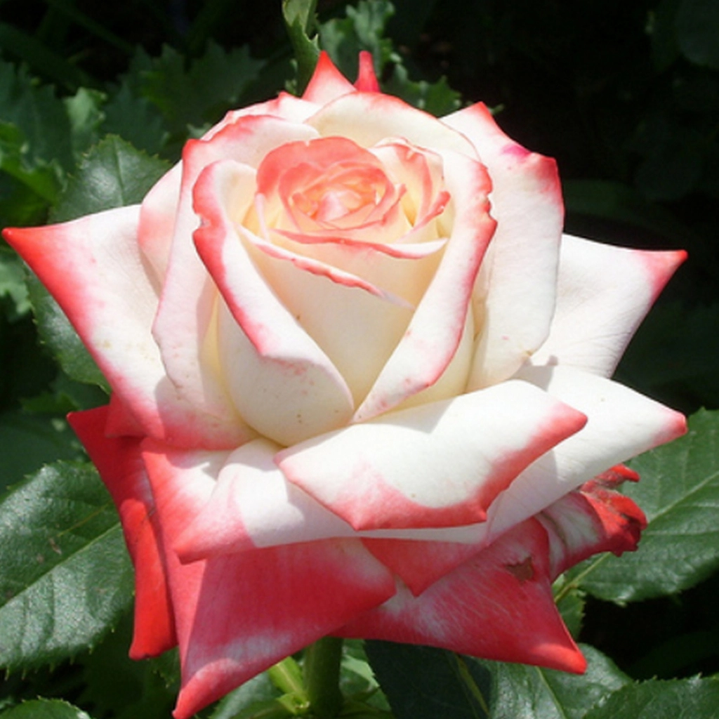 Elegáns megjelenésű, csodaszép teahibrid rózsa. Fehér, selymes szirmainak széle élénk vörös-piros színű. Lombozata szép világoszöld. Kiváló vágottvirág. Nyár elejétől az első fagyok beálltáig folyamatosan virágzik. Napos helyre ajánlott ültetni. Gyökércsomagolt rózsákat szállítunk.