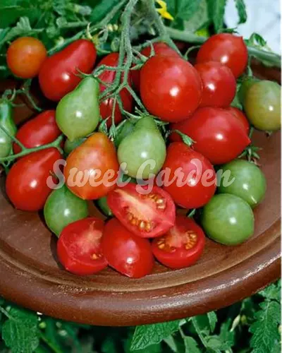 Középkorai érésű fajta. Termései apró méretűek, szép pirosak és érdekes, körte formájúak. Egy fürtön számos édes és lédús termést hoz. Főként friss fogyasztásra ajánlott. A csomag tartalma 0,5 g.
