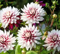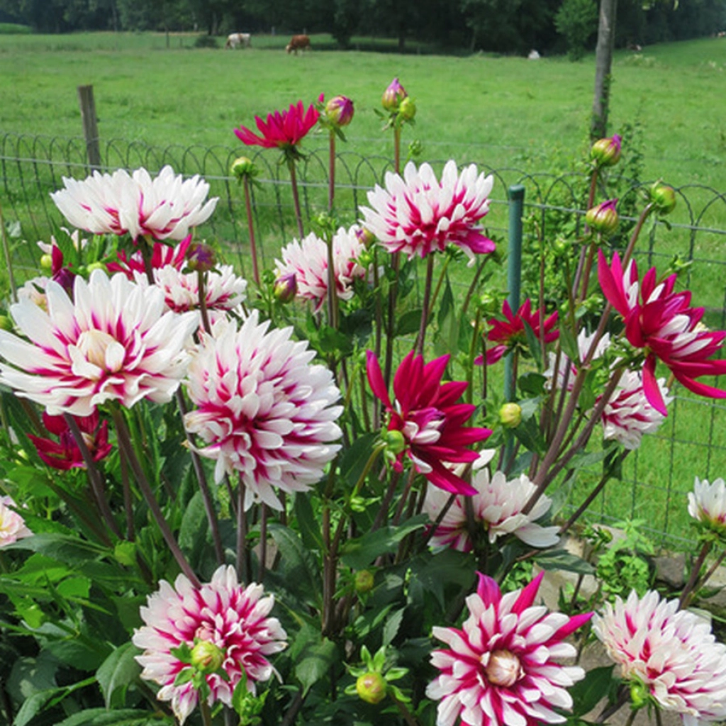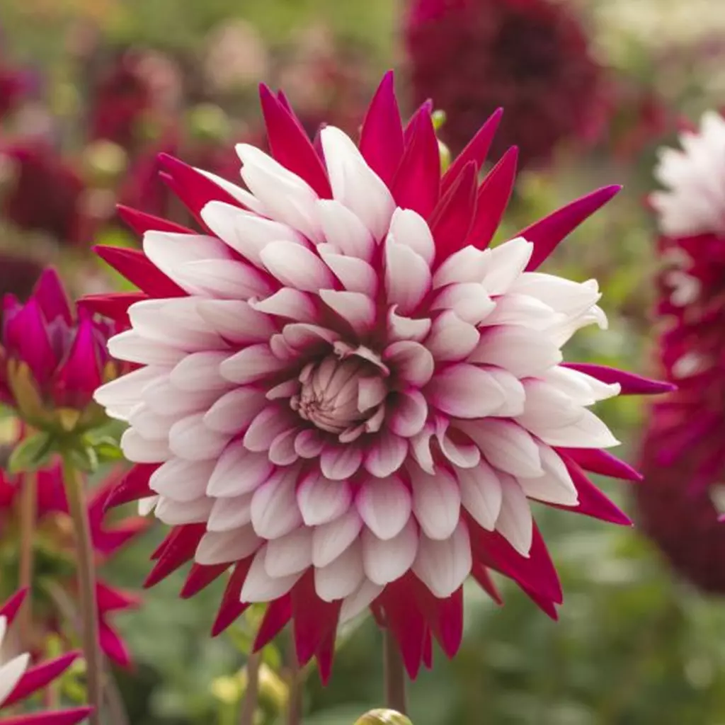Elképesztő sokszínűség jellemzi ezt a dáliát. Mindegyik virág egyedi mintázatú: némelyik fehér, szirmainak töve pedig meggypiros, mások lehetnek csíkosak vagy teljes egészében bordó színűek. Egyszerűen lenyűgözőek! A Rebecca`s World dália töretlenül virágzik egész nyáron át. A csomag 1 darab gumót tartalmaz.