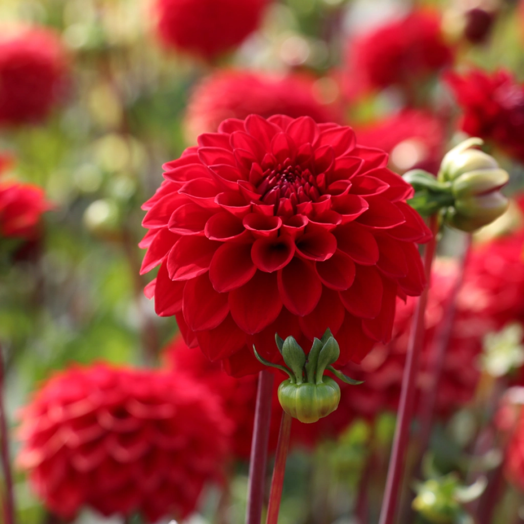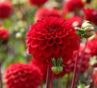 Nagy, csillogó, gömb alakú, élénkpiros virágú dália. Ideális évelőágyásokba ültetve, de vágott virágként is. A csomag 1 rizómát tartalmaz.