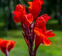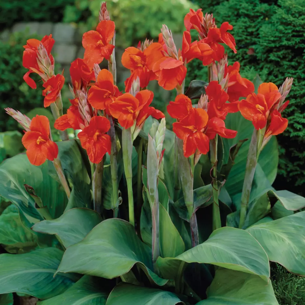 A kánna, más néven rózsanád, egzotikus megjelenésű növény, amely egy kis trópusi hangulatot hoz a kertbe. Sötétpiros színű virágai nyár elején jelennek meg és csodálatosan díszítenek késő őszig. A csomag 1 db. rizómát tartalmaz.