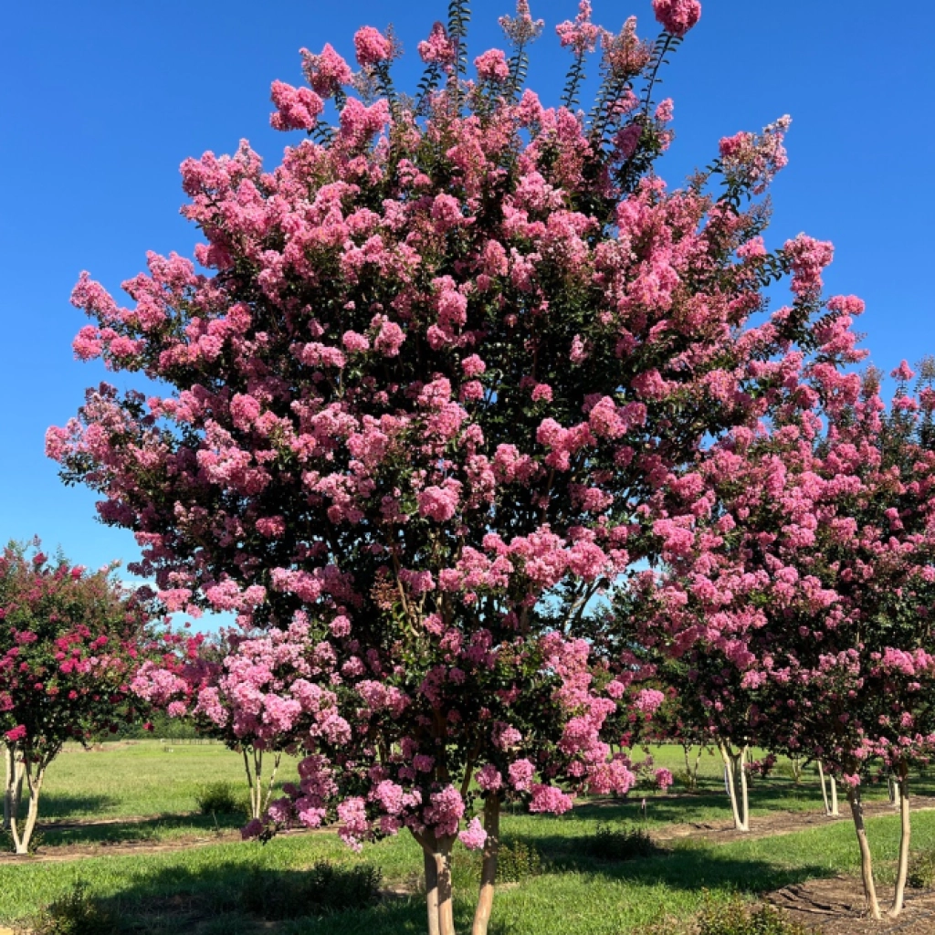 Csodaszép selyemmirtusz, amely a nyár derekátől őszig virágzik. A nagy bugákba csoportosuló rózsaszín virágok gyönyörű kontrasztot alkotnak a zöld lombozattal. A virágok érdekes, kreppelt textúrájúnak hatnak. Ősszel a levelek narancssárga és vörös árnyalatokat öltenek. A kifejlett növény kérge is nagyon dekoratív, érdekesen texturált és hámló. A bőséges virágzás érdekében napos helyre ajánlott ültetni.