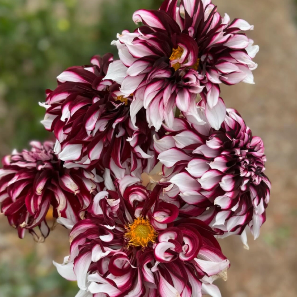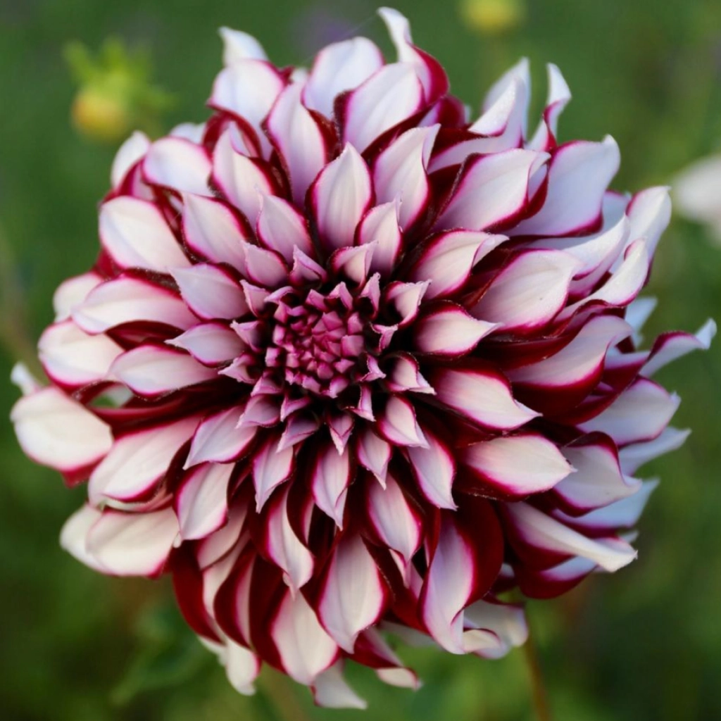 Extravagáns, rendkívül dekoratív dália. Nagyméretű virágaiban a burgundivörös szirmok fehérrel tarkítottak. Hosszú hónapokon keresztül gyönyörködhetünk bennük. A csomag 1 rizómát tartalmaz.