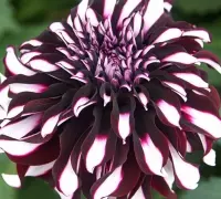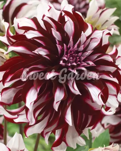Extravagáns, rendkívül dekoratív dália. Nagyméretű virágaiban a burgundivörös szirmok fehérrel tarkítottak. Hosszú hónapokon keresztül gyönyörködhetünk bennük. A csomag 1 darab gumót tartalmaz.