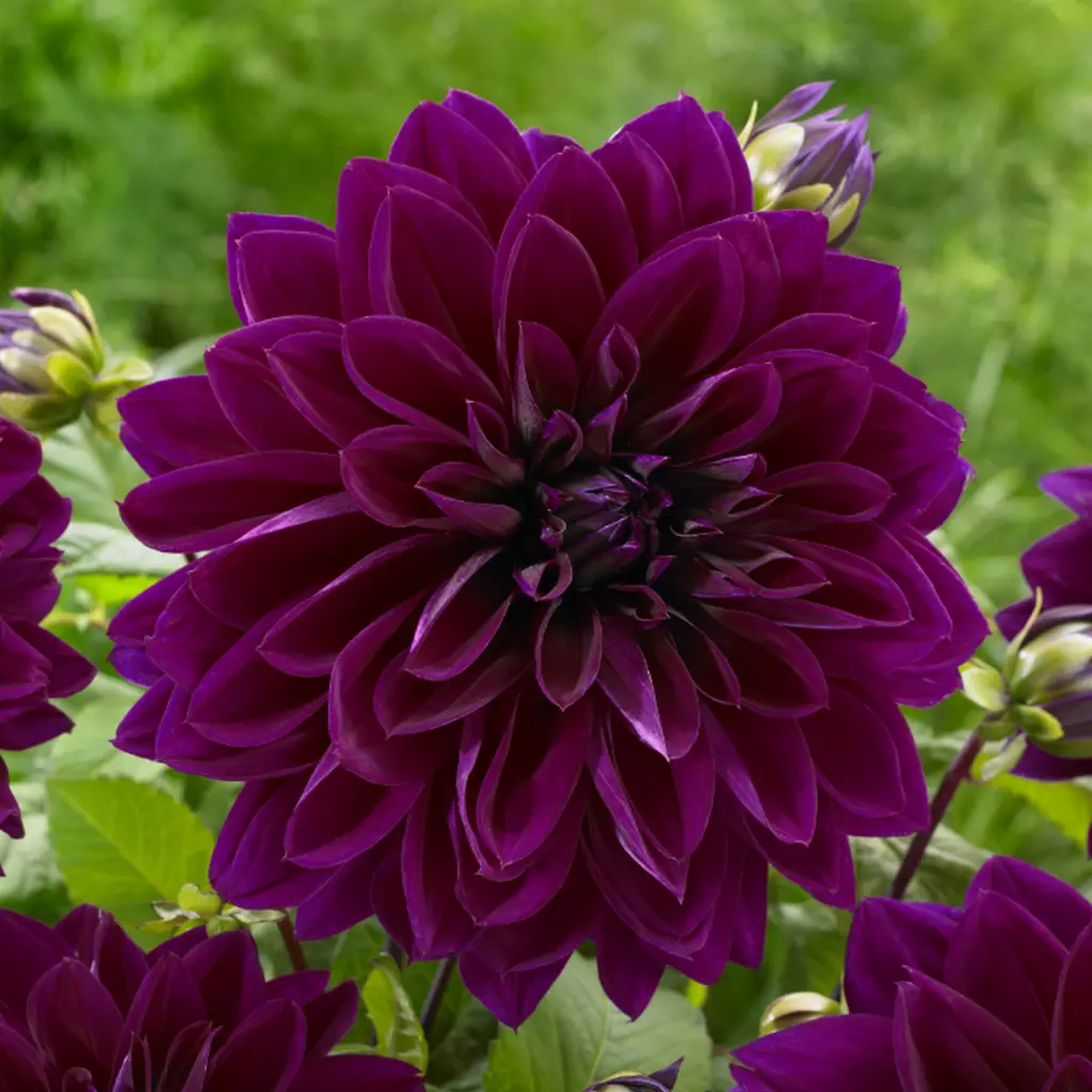 Nagyvirágú, sötétlila színű, dekoratív dália. Szirmai hosszúak és hegyesvégűek, nagyméretű virágfejet alkotnak. Évelőágyások páratlan dísze. Szárahosszú, kb 60 cm-es, ennek köszönhetően gyönyörű csokrokat ésvirágkompozíciókat készíthetünk a vágott virágokból.A csomag 1 darab rizómot tartalmaz.