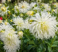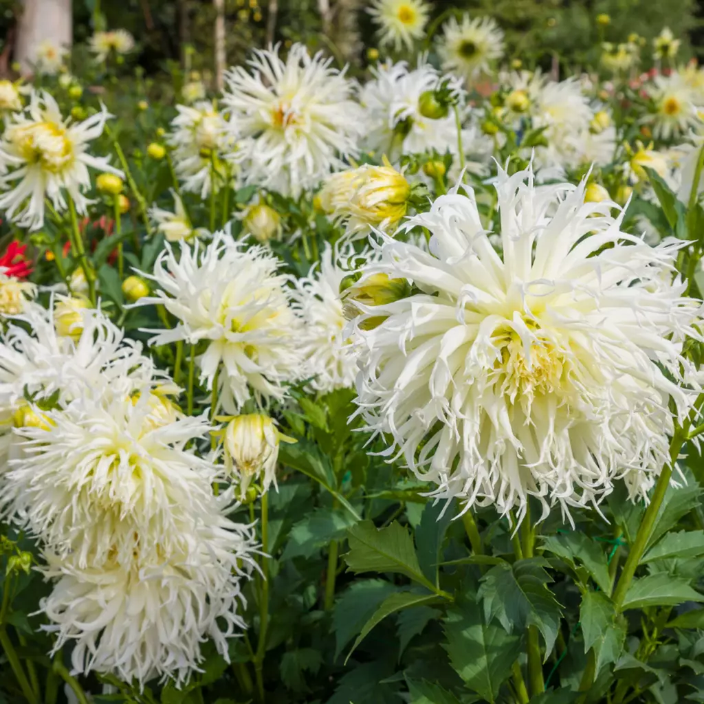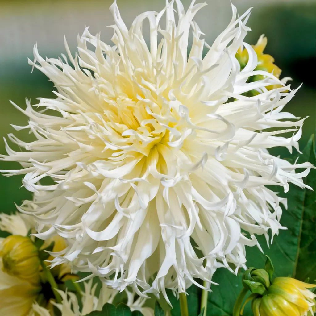 Japán nemesítésű változat. Nagy méretű, szokatlan formájú virágai garantáltan kivívják csodálatunkat. A hullámos, cakkos végű fehér szirmok tömött fejet formálnak. Valóban olyan mintha egy más bolygórol érkezett volna. A csomag tartalma 1 hagyma.